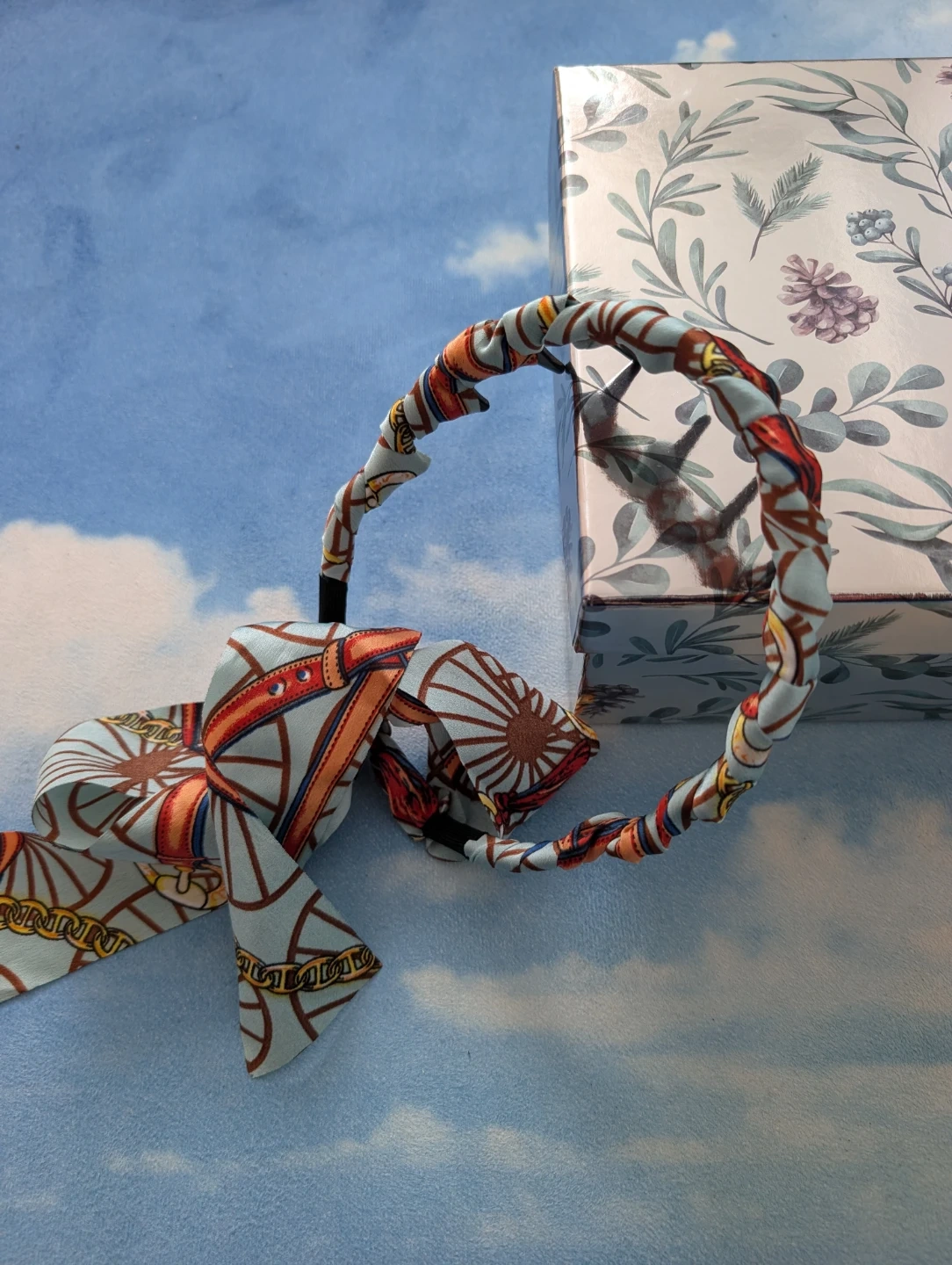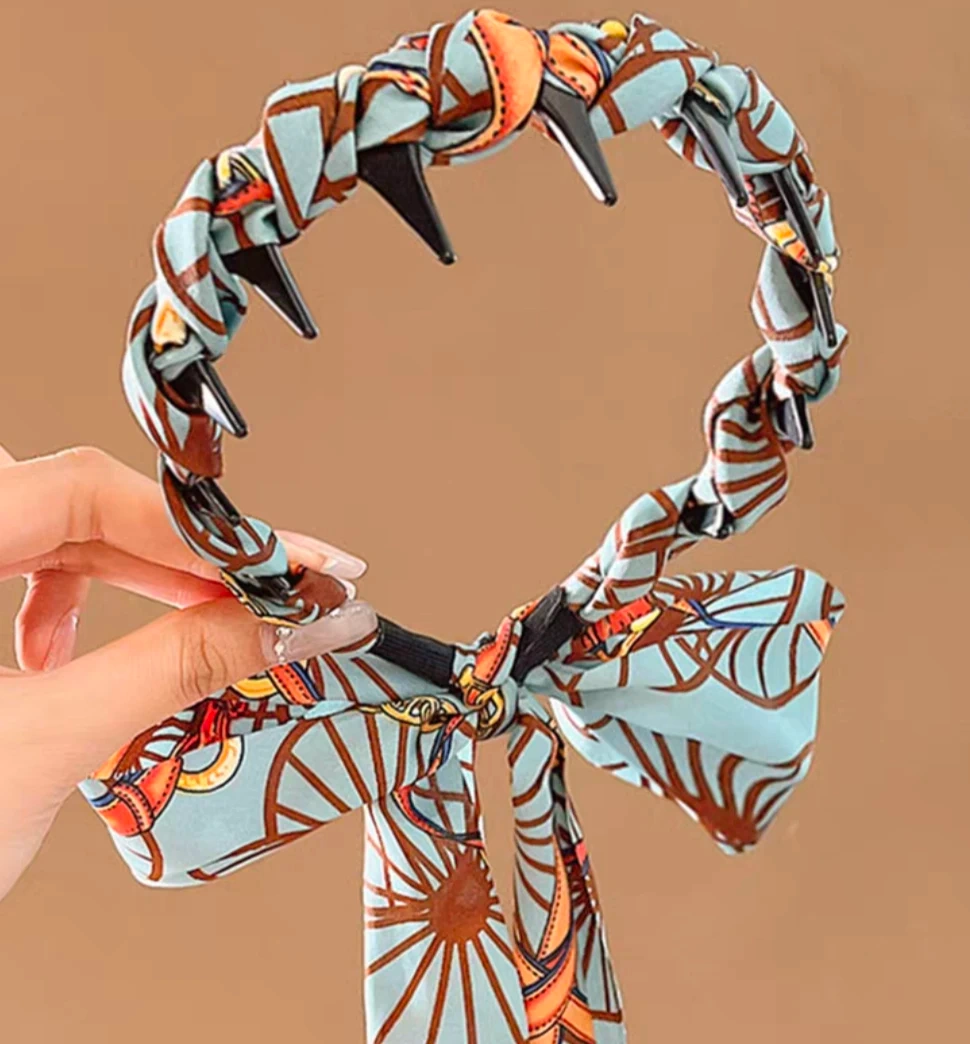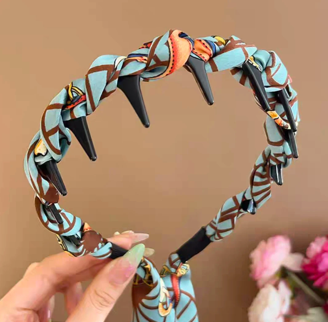 Stylish Blue Patterned Headband. Elevate your look with this chic blue patterned headband. Perfect for adding a touch of elegance to any outfit.