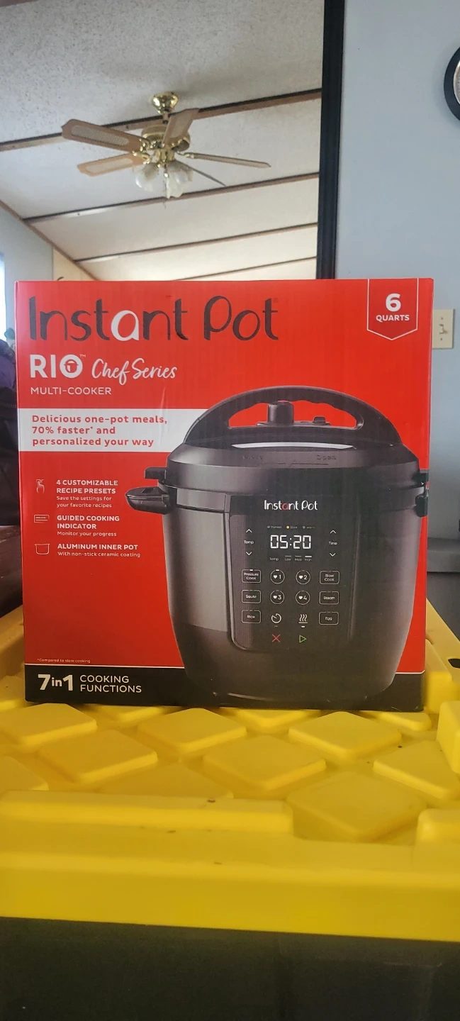 It's a 6-quart Instant Pot RIO Chef Series multi-cooker with 7-in-1 cooking functions. Features 4 customizable recipe presets and a guided cooking indicator. It has an aluminum inner pot with non-stick ceramic coating.