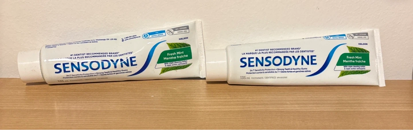 - 2 135ml tubes of Sensodyne Fresh Mint toothpaste