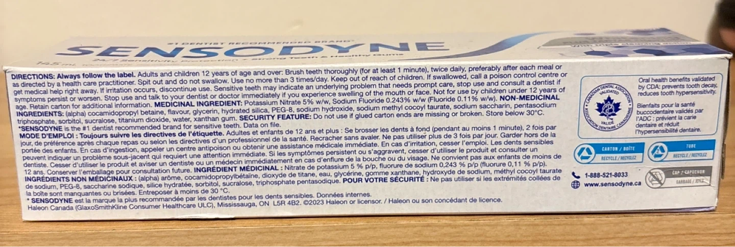 - 145ml tubes of Sensodyne whitening toothpaste.