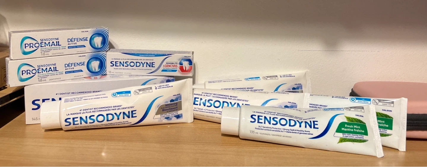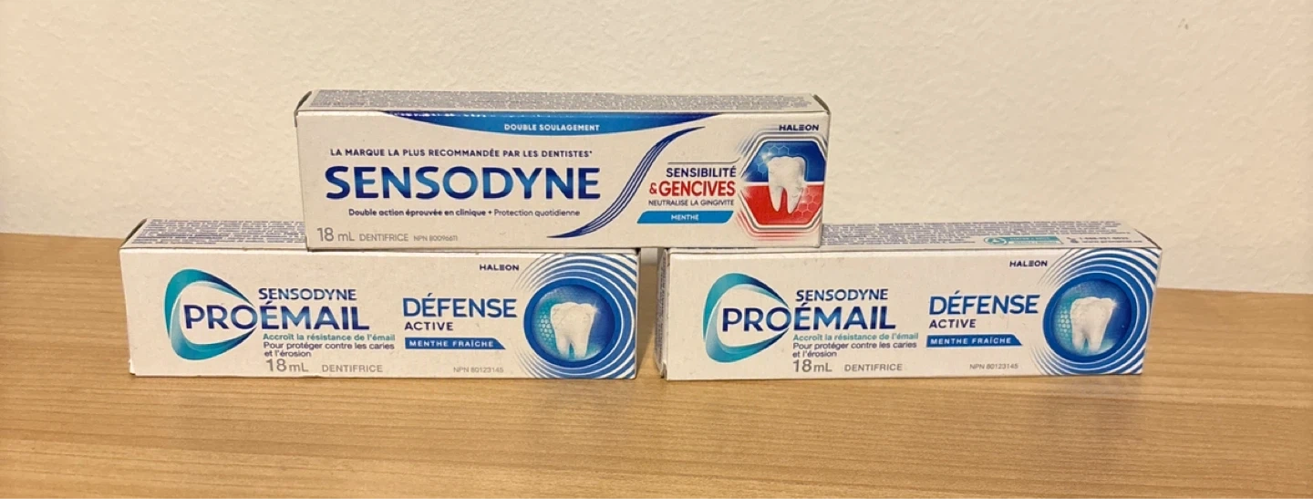 - 145ml tubes of Sensodyne whitening toothpaste.