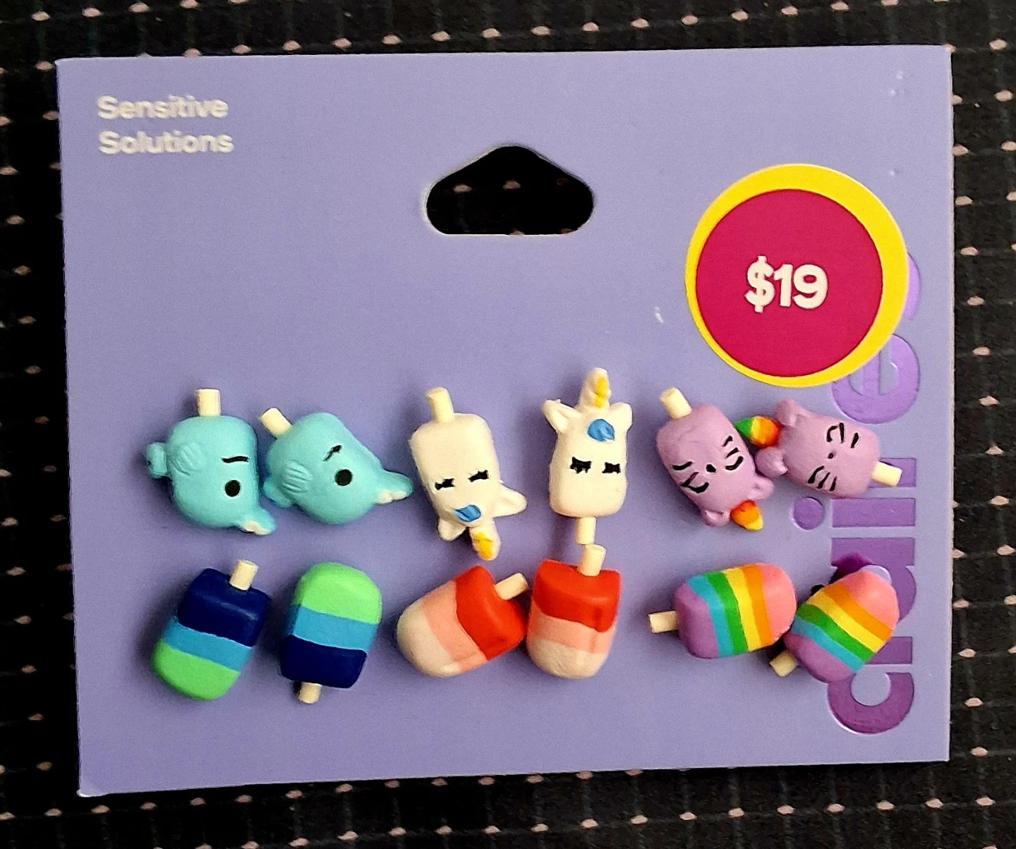 These Claire's Sensitive Solutions stud earrings are brand new and ready to wear! The set features a variety of fun and colourful designs, perfect for adding a playful touch to any outfit. Originally bought for $19