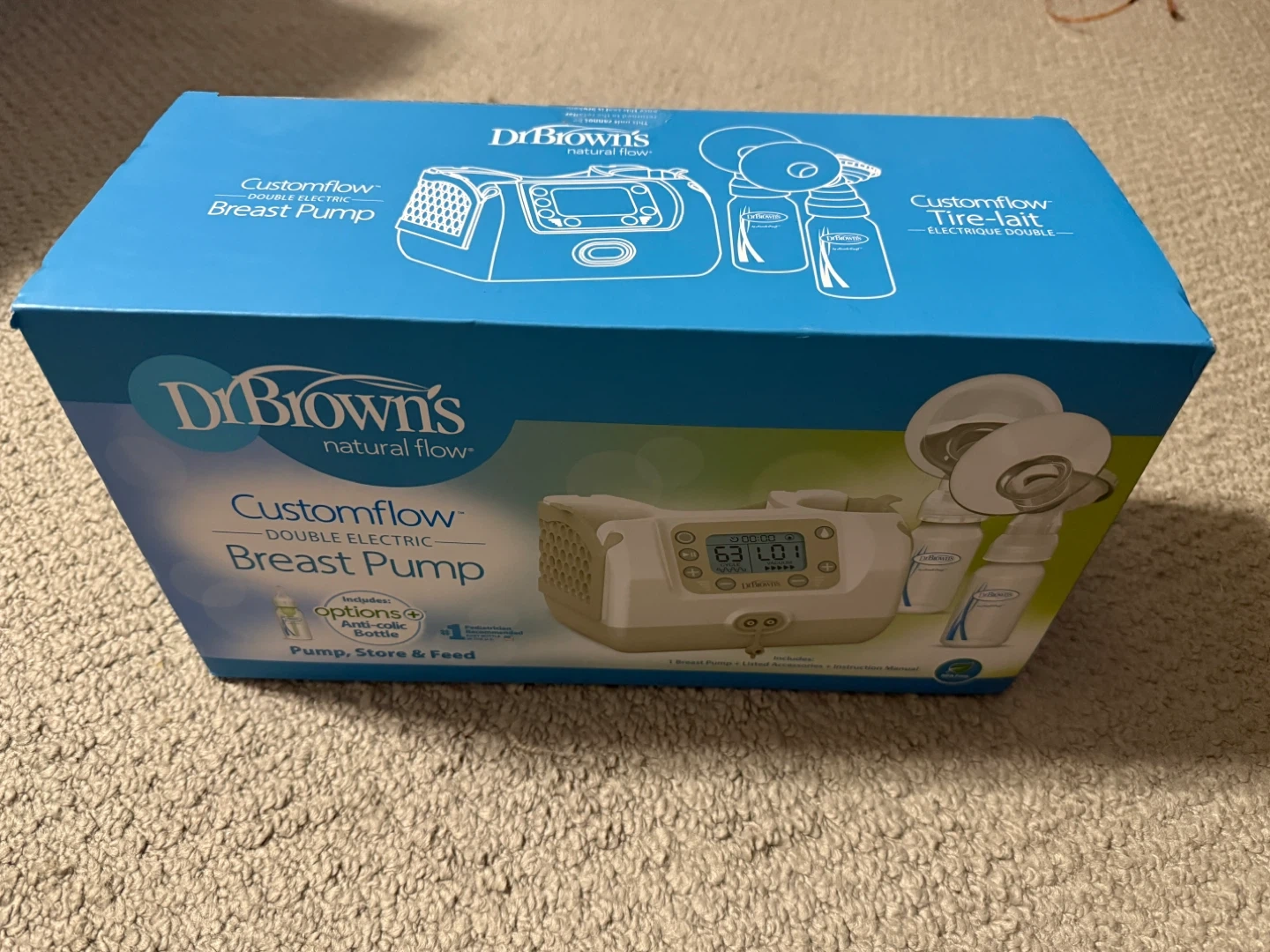 Selling a Dr. Brown's Customflow Double Electric Breast Pump. It comes with all the accessories you need to pump, store, and feed. Originally bought for $108