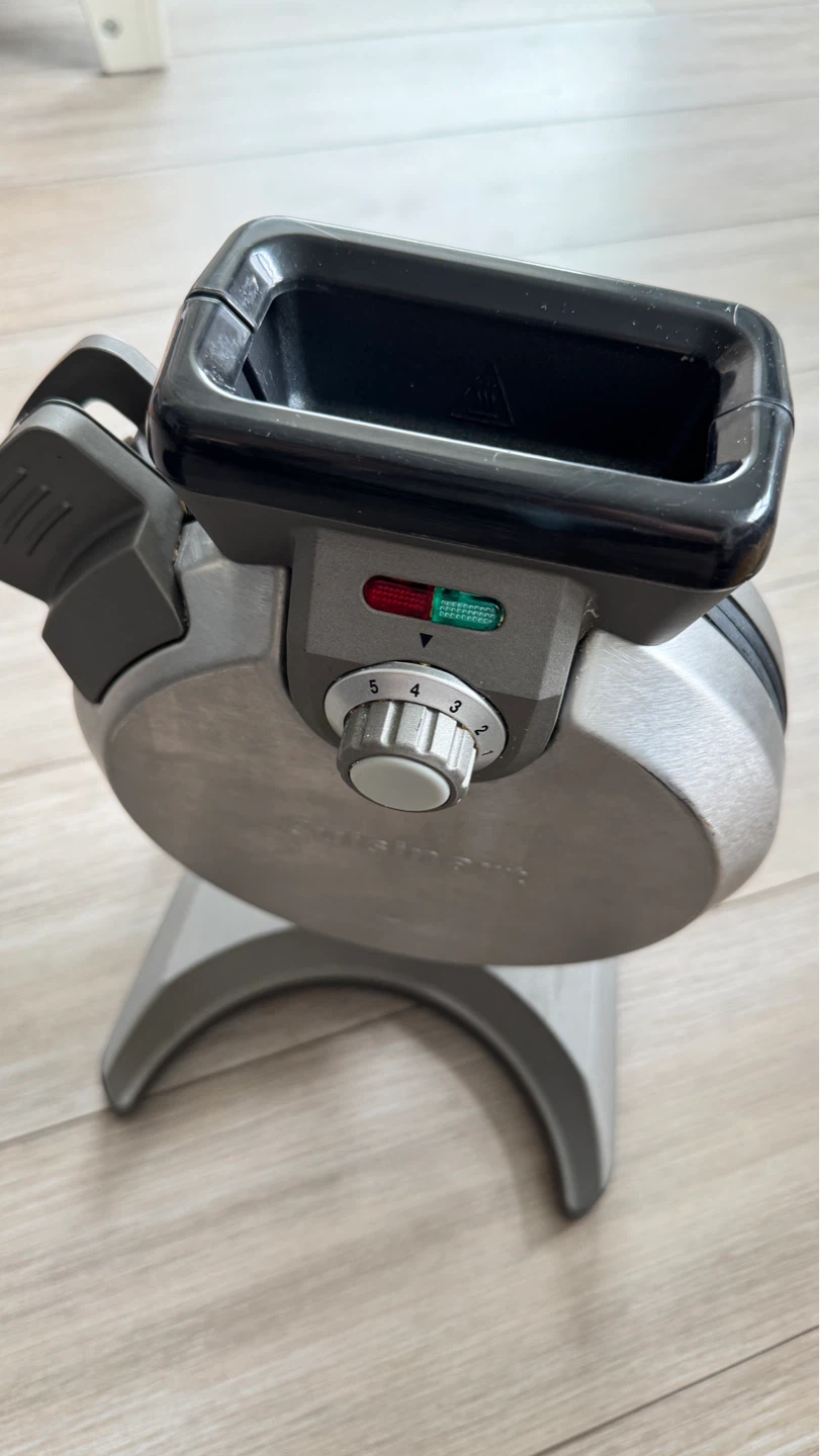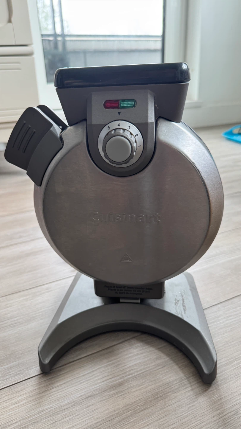 This Cuisinart waffle maker cooks evenly with its non-stick plates. It has a browning control dial for customized waffles. Comes with indicator lights for power and ready status.