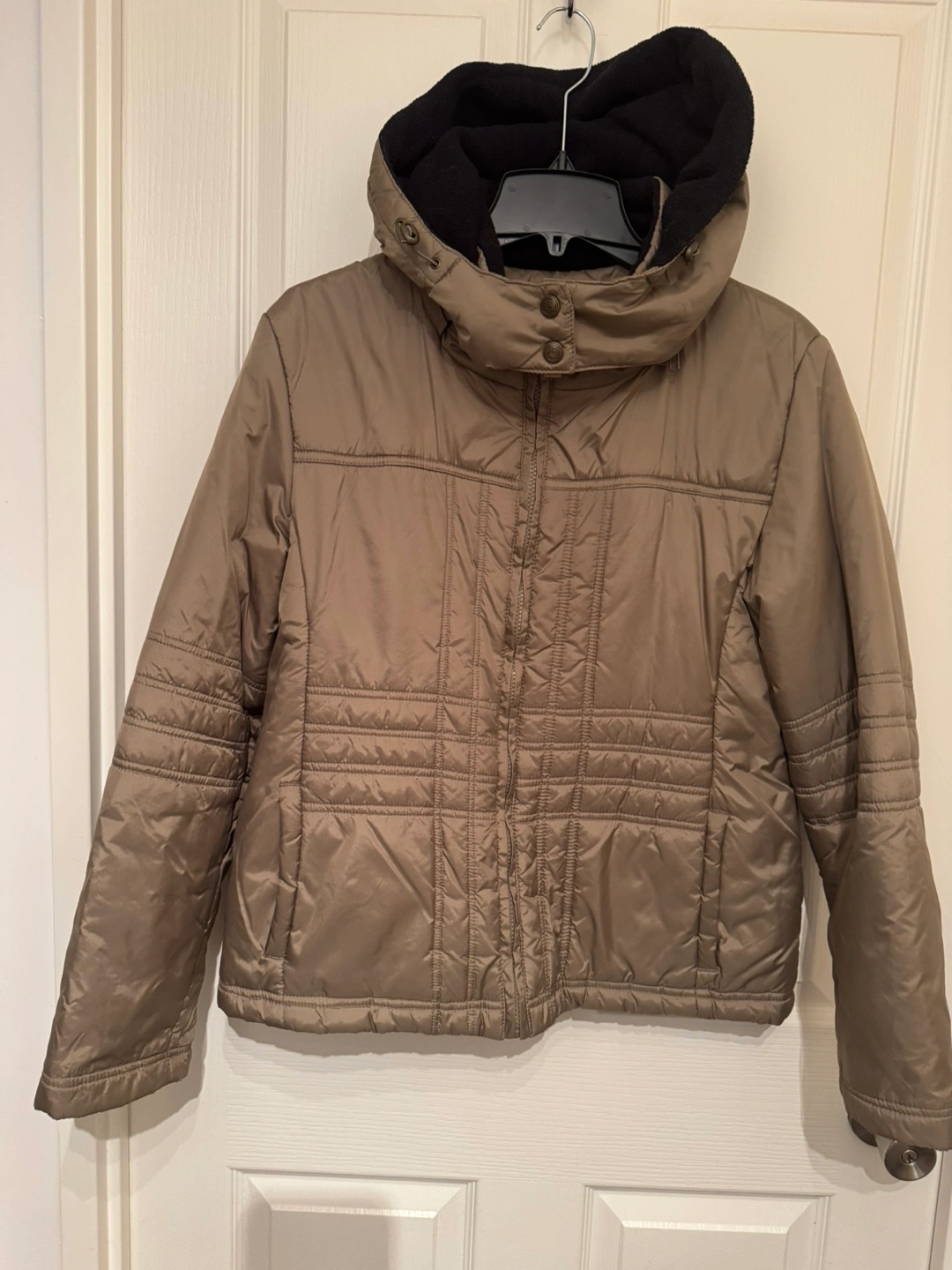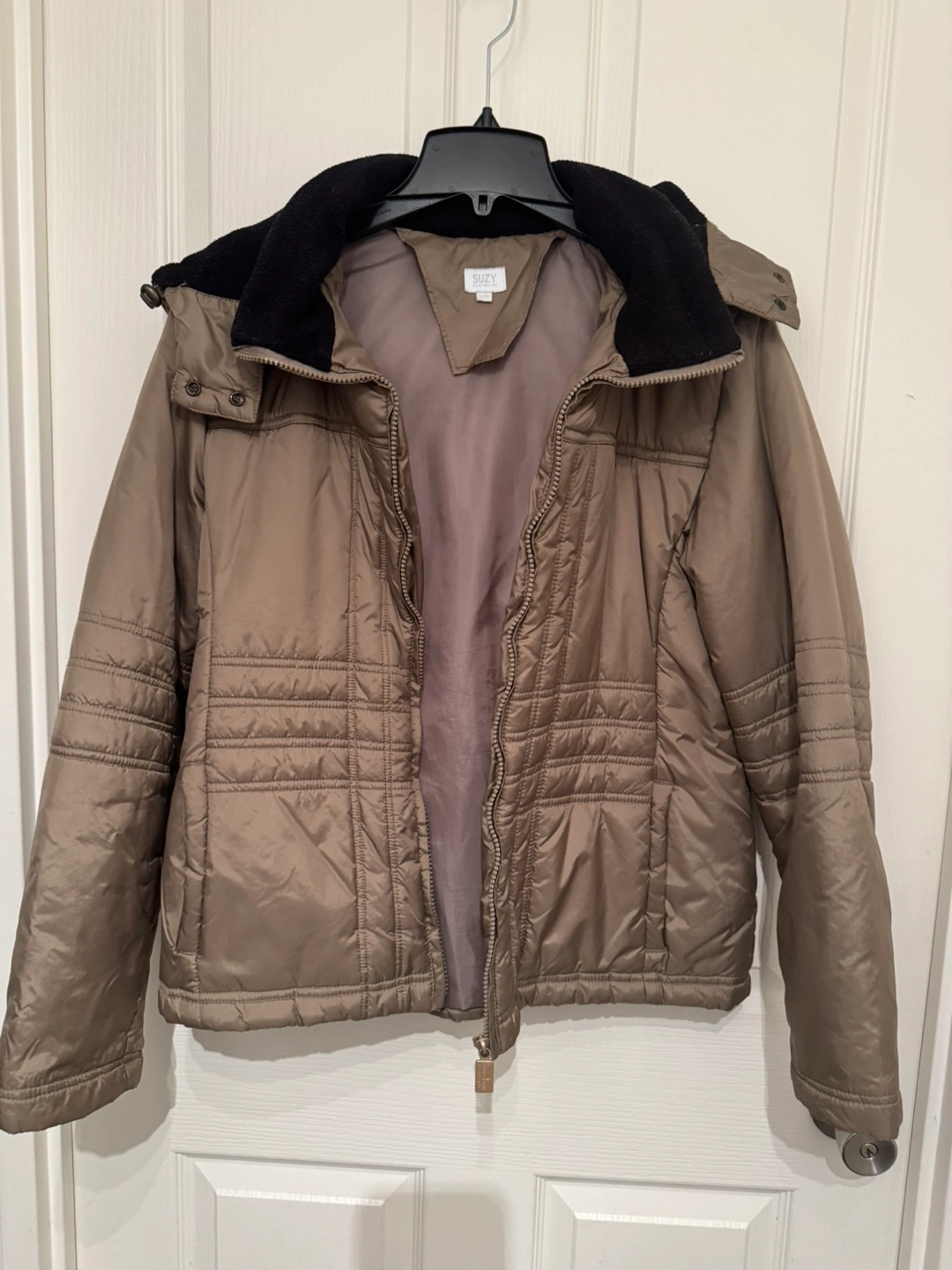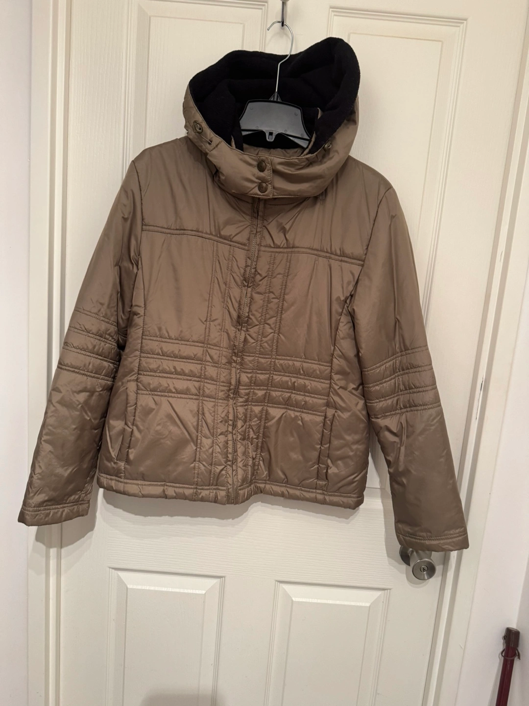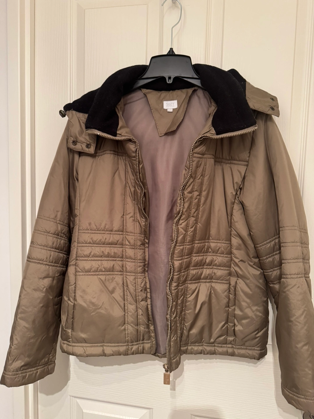 Selling a Suzy Shier jacket in great condition! It's a stylish jacket, perfect for the Canadian weather. It has a removable hood and a zipper closure. It's a great addition to your wardrobe! Size- Large. From pet free, smoke free home. Pick up at Steeles & Bathurst area.