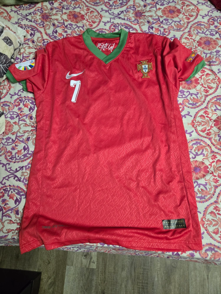 Selling a Nike Portugal soccer jersey with Ronaldo's name and number 7 on the back, along with matching shorts!
