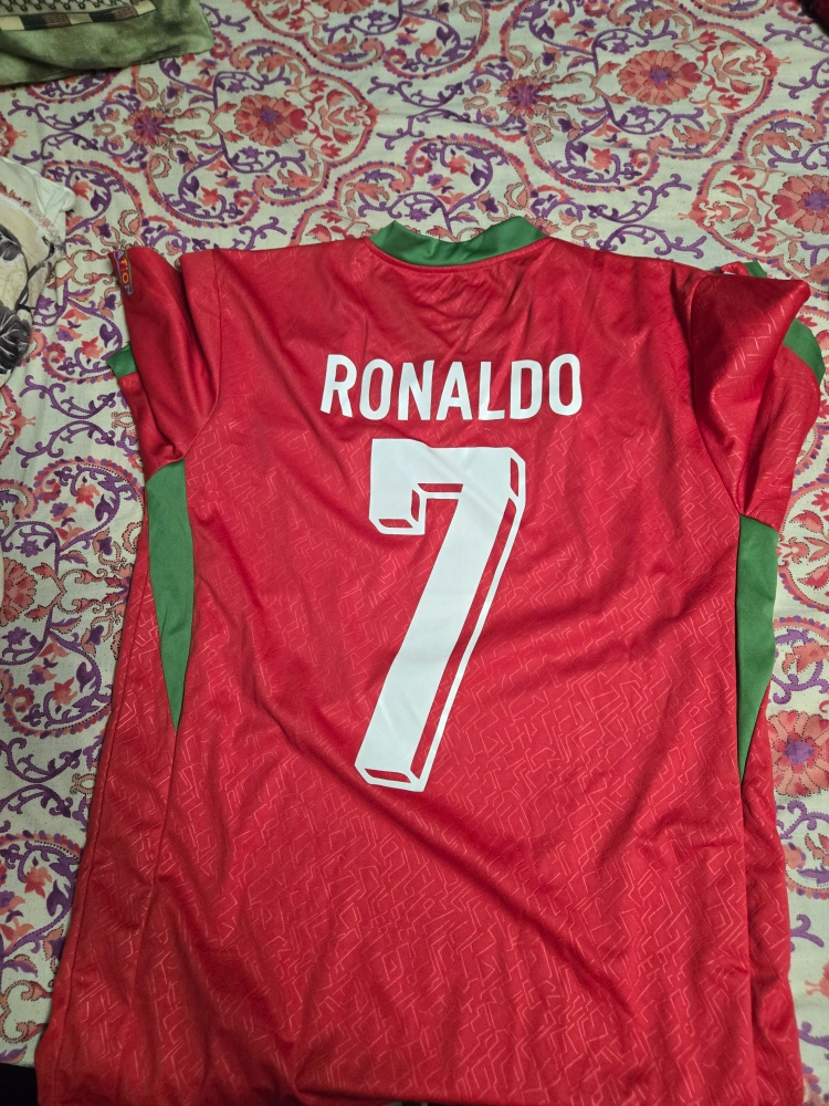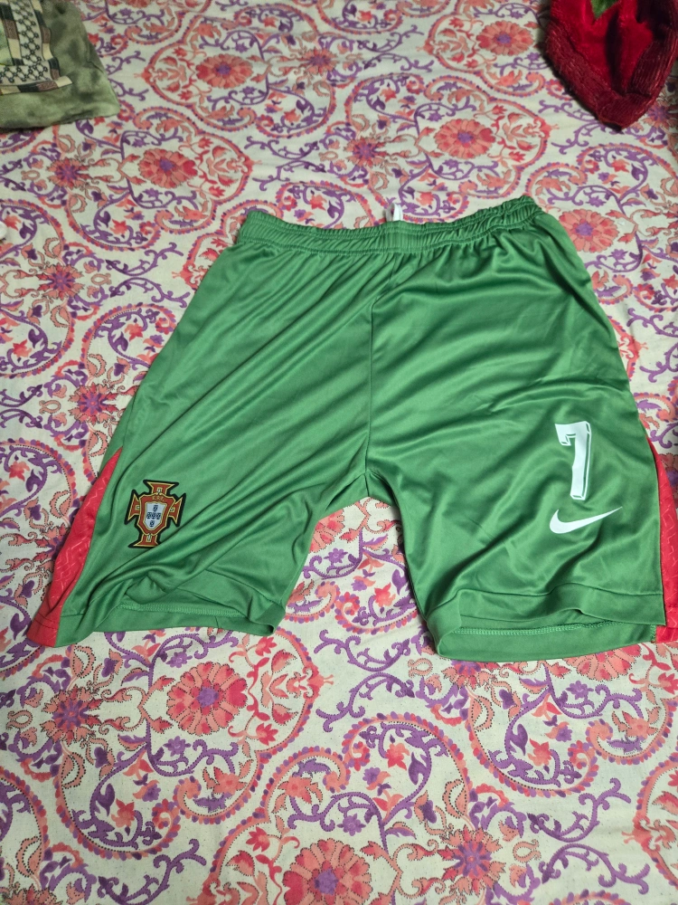 Selling a Nike Portugal soccer jersey with Ronaldo's name and number 7 on the back, along with matching shorts!