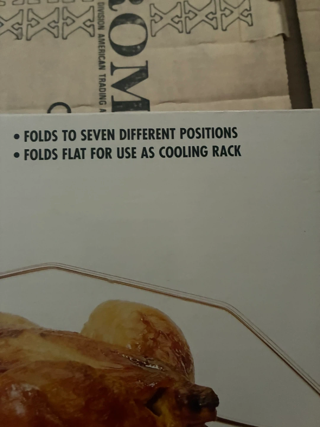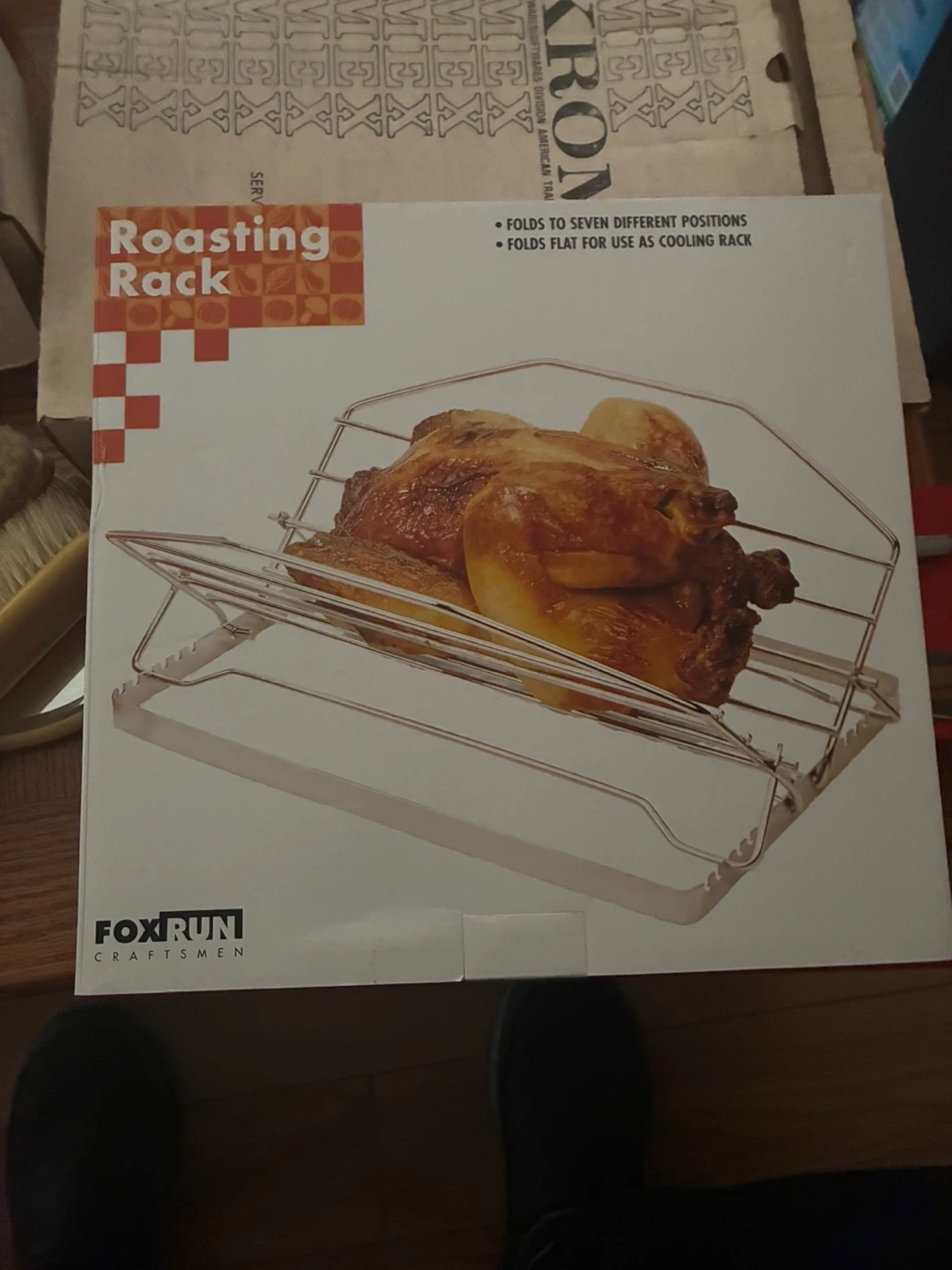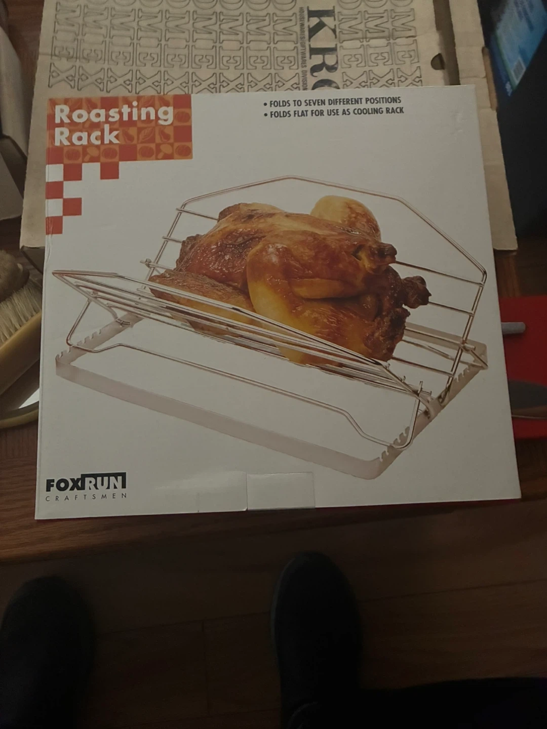 This is a Fox Run Craftsmen roasting rack. It folds to seven different positions and can fold flat for use as a cooling rack. It's a handy tool for preparing poultry.