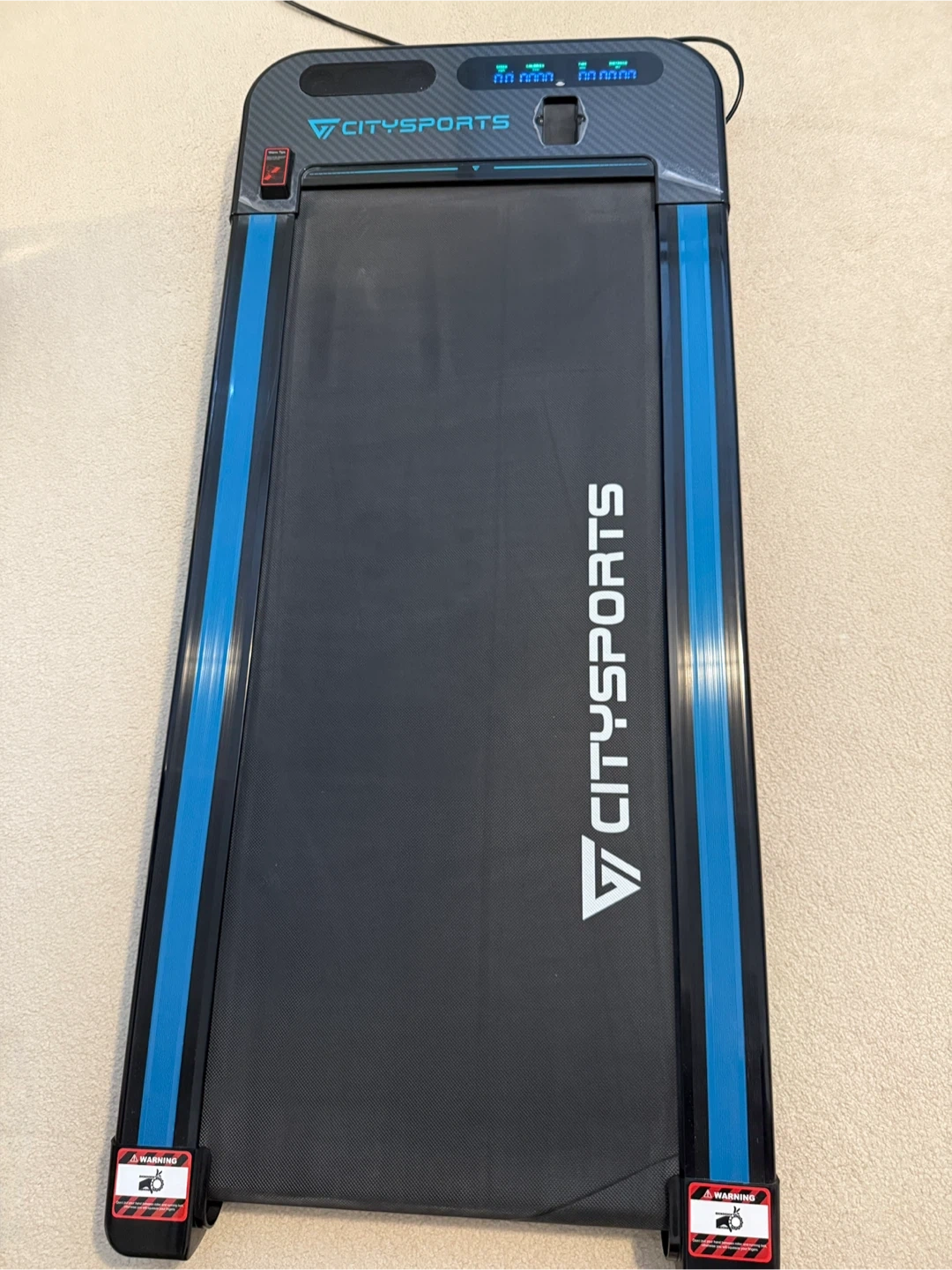 This is a CITYSPORTS under-desk treadmill. It's a compact and convenient way to get some steps in while you work. It features a digital display for tracking your progress. This treadmill is great for small spaces!