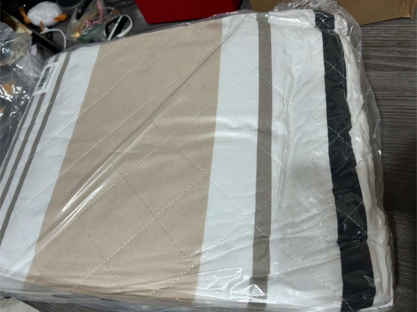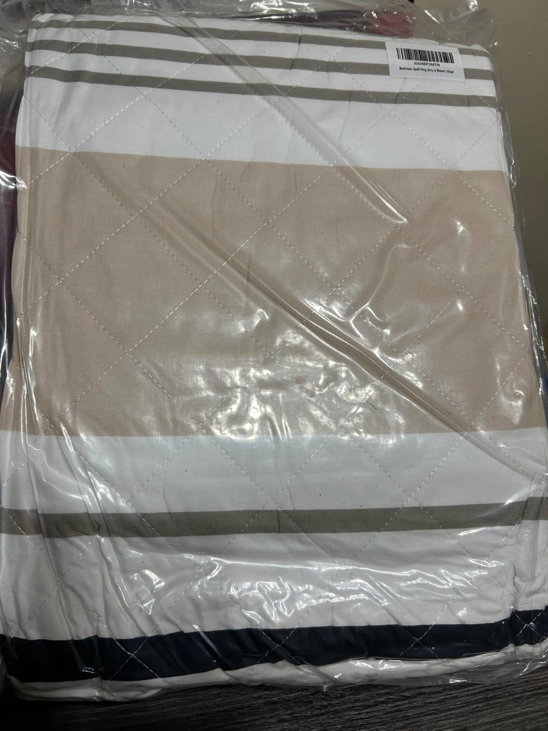 I’m selling a Brand New Bedmoon Quilt King Grey & Brown Striped, Lightweight Reversible Quilt Bedding Set, 3 Pieces Soft Bedspread Couvre Lit, All Seasons Microfiber Coverlet King Size bedroom quilt. It's new still in original packaging !