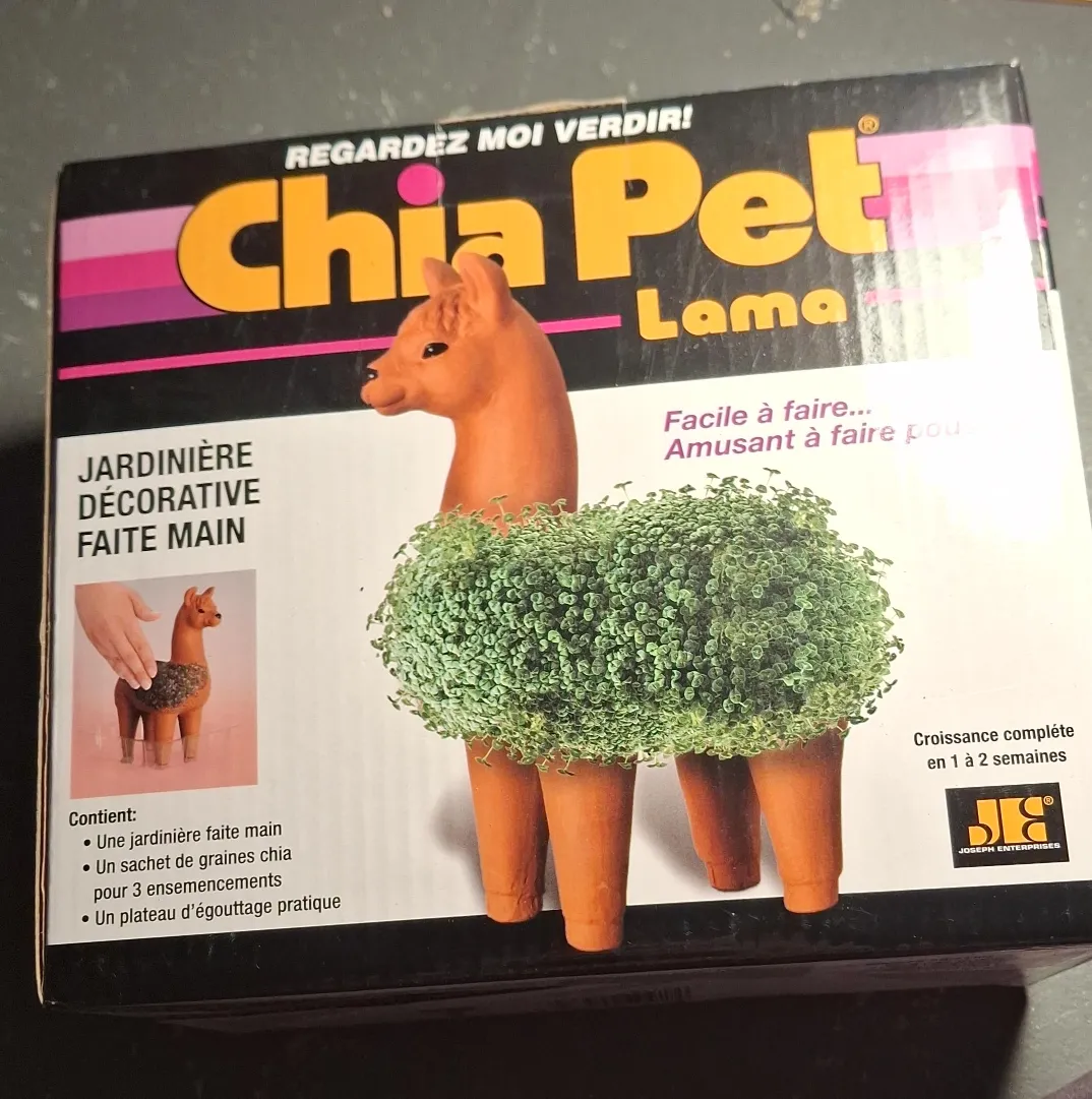 Get ready to grow your own green hair on this adorable Chia Pet Llama! This decorative planter is a fun and easy DIY project. It includes the handmade planter, a chia seed packet, and a drip tray!