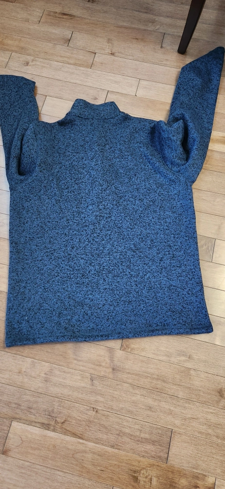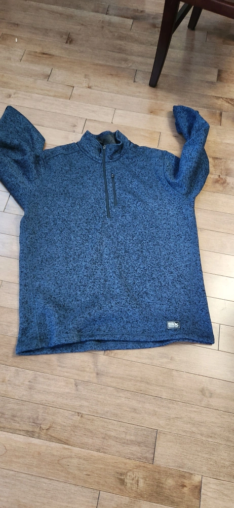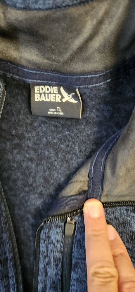 Brand New. Cozy up in this Eddie Bauer fleece pullover! It's a men's X large (TL) in a nice blue colour. Perfect for layering or wearing on its own on those cooler days. It has a quarter zip at the neck.