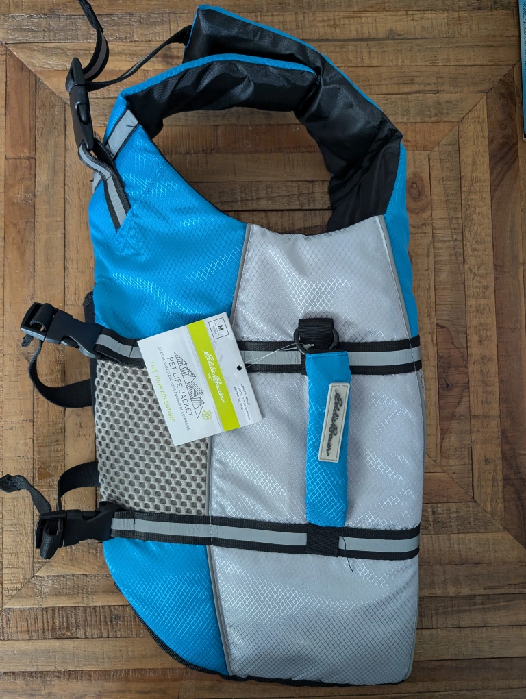 New with tags. Medium sized pet life jacket. Blue and grey. Adjustable straps. Great for water safety. Pick up in Leslieville or meet up at Gerrard Square. Cash or e-transfer.