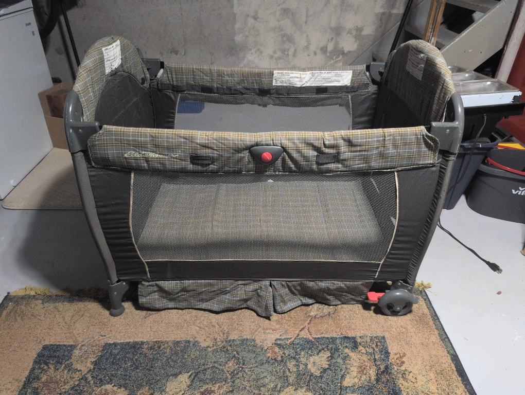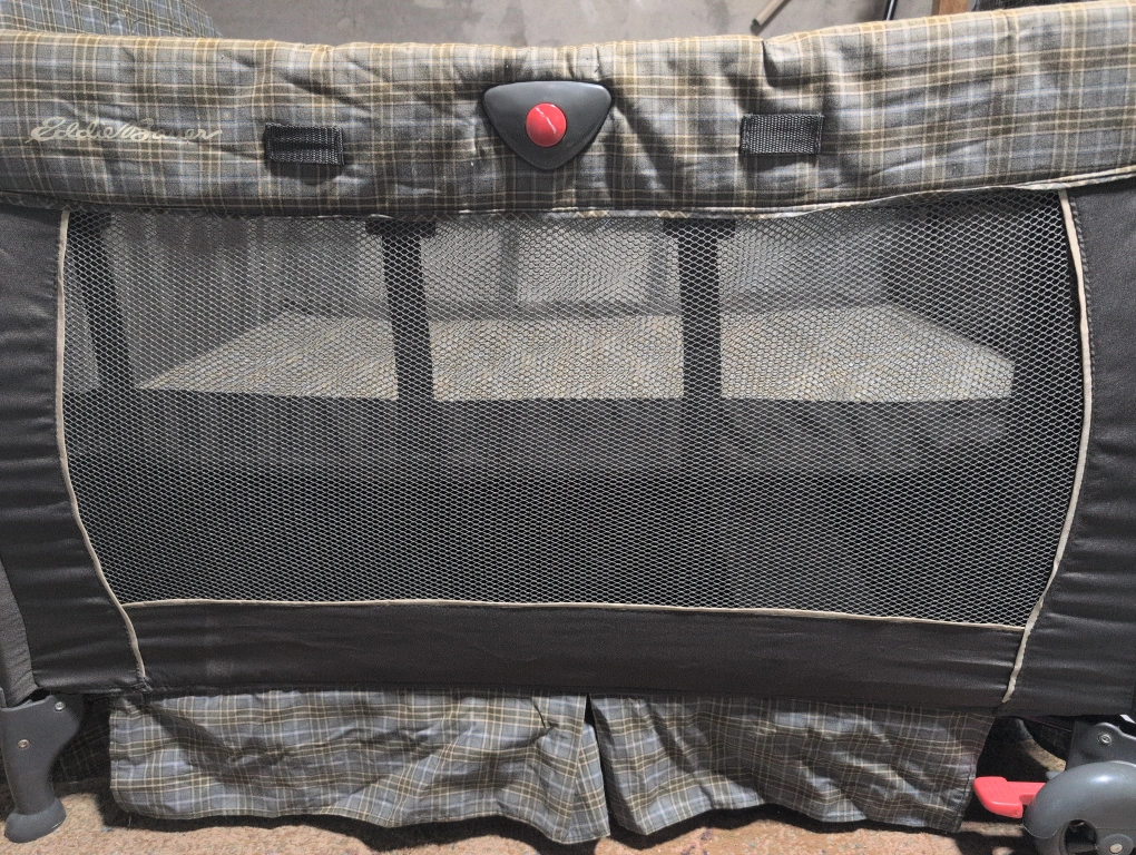Selling an Eddie Bauer play yard! It's in great shape and has a nice plaid pattern. Perfect for little ones to play or nap safely!