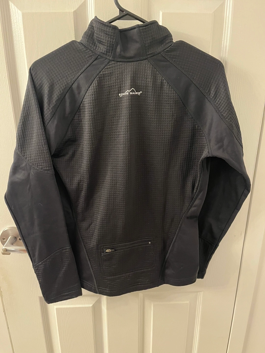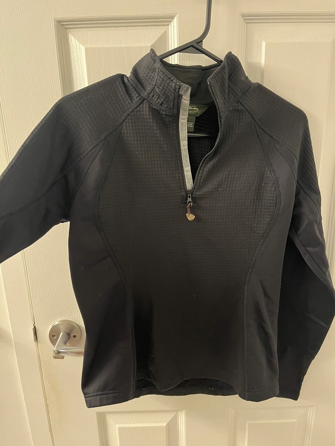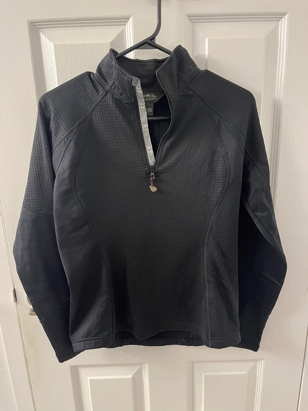 Size small Eddie Bauer activewear quarter-zip pullover, with running/biking pocket on the back.