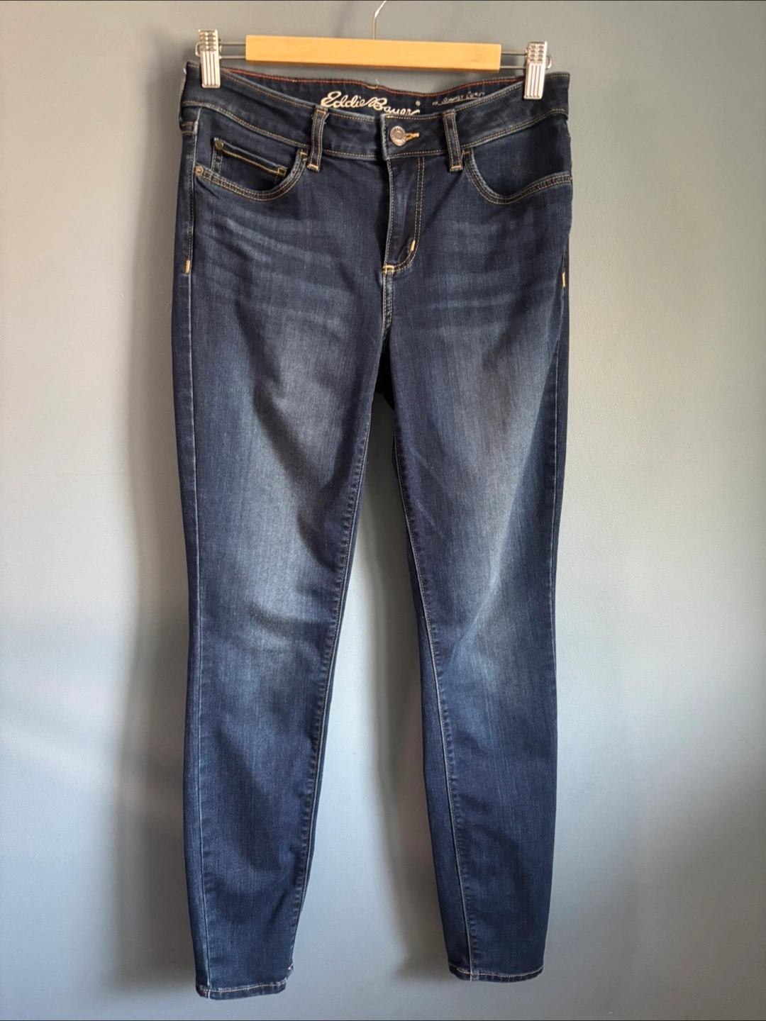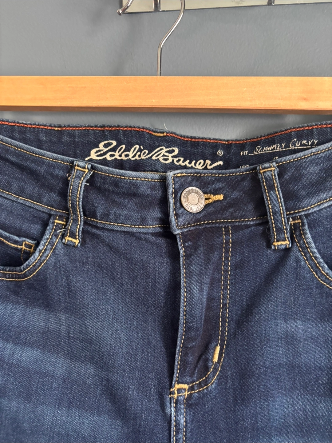 Selling a pair of Eddie Bauer women's jeans in size 6. They have a skinny leg and a slightly curvy fit. The jeans are in great condition and ready for a new home!