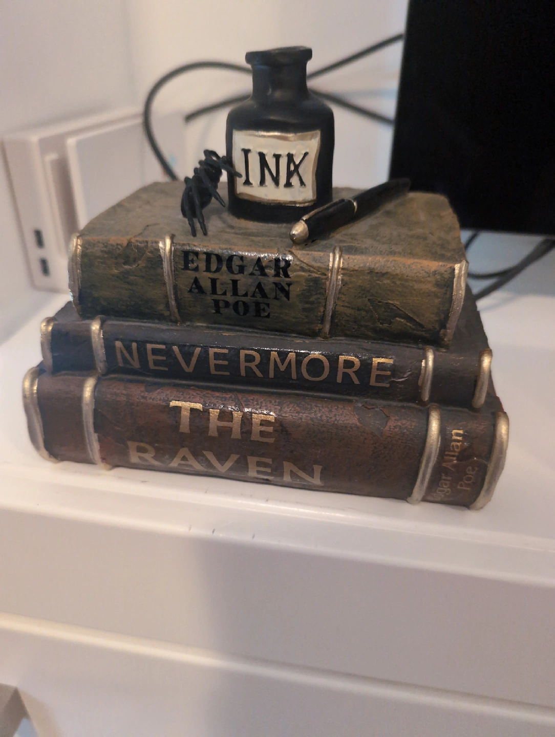 10This is a decorative figurine of a stack of books by Edgar Allan Poe, complete with an inkwell and pen. It's a unique piece to add to your home decor! from Ashland brand at Michaels