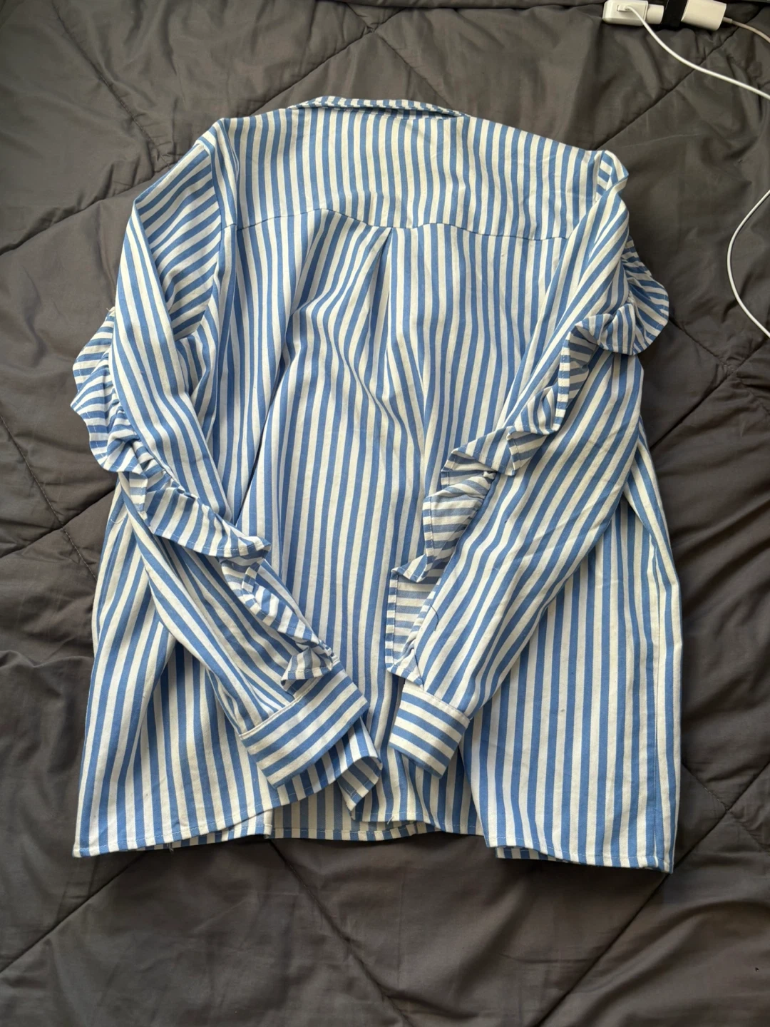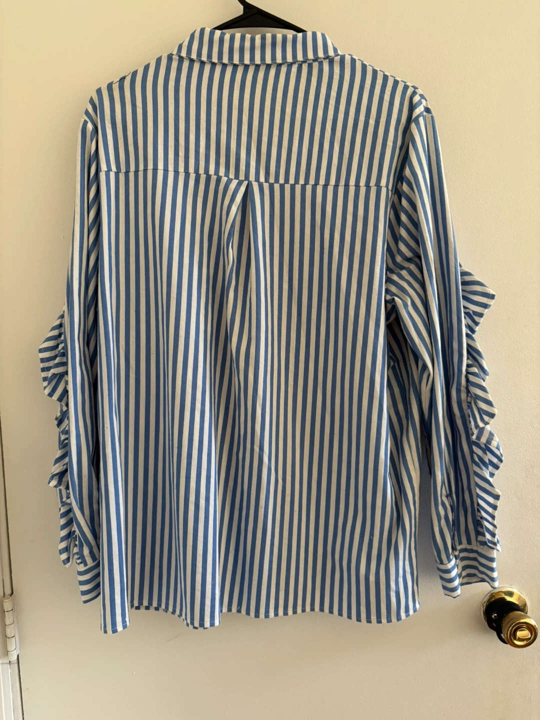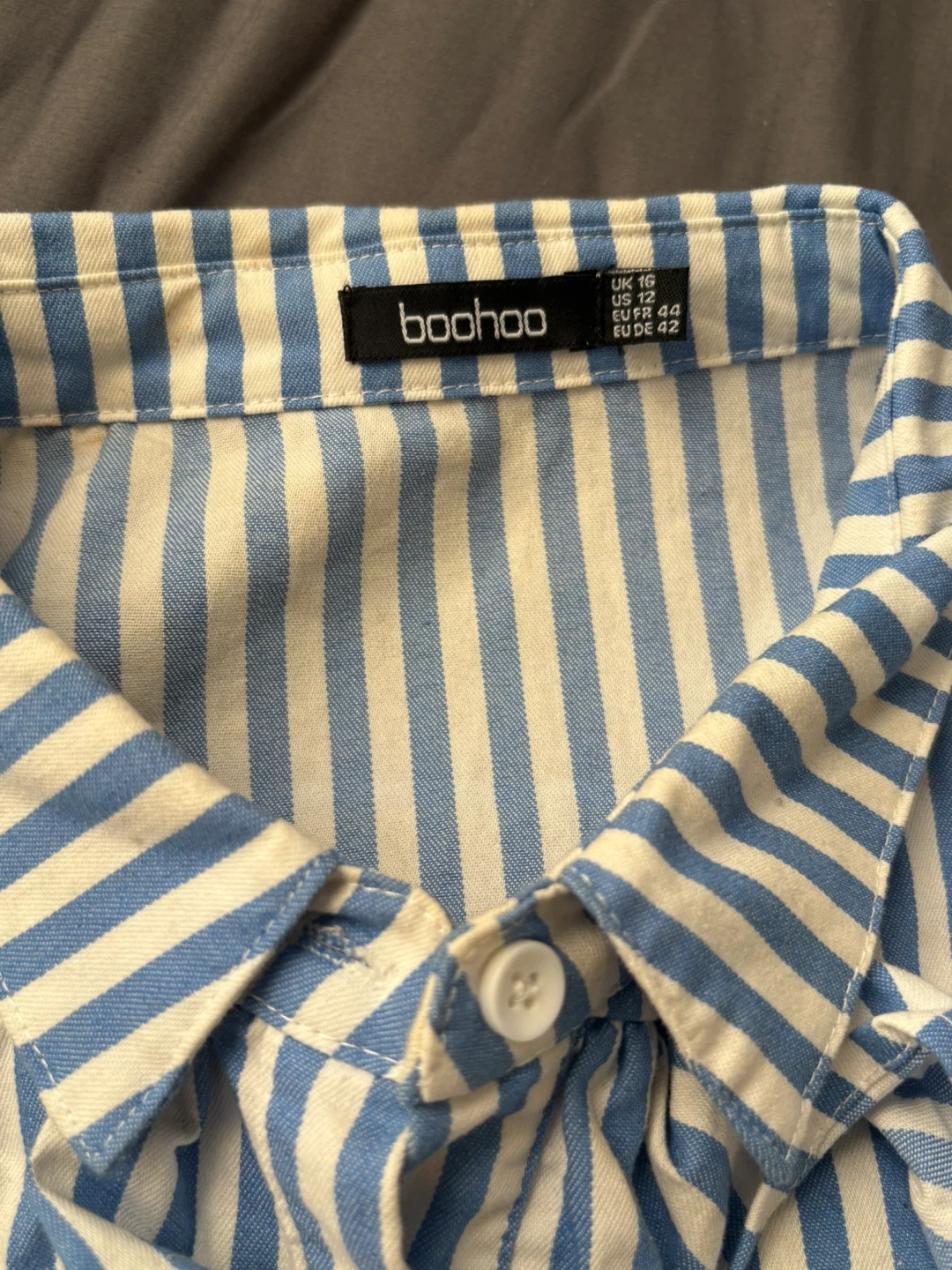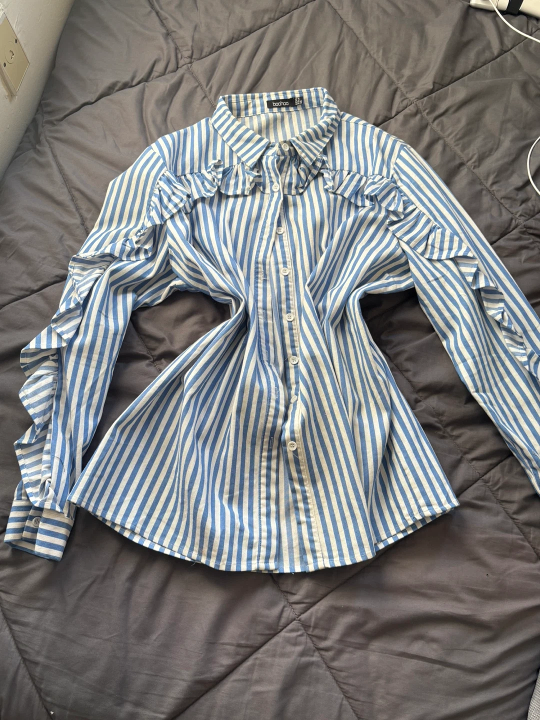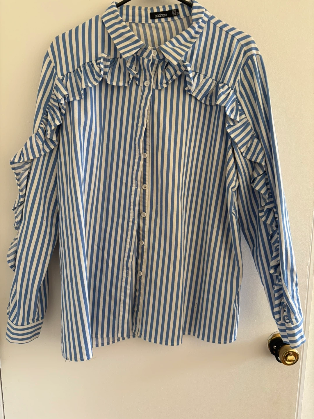 Buy & SellBoohoo Blue Striped Ruffle Sleeve BlouseBoohoo Blue Striped Ruffle Sleeve Blouse$20Boohoo blue and white striped blouse with ruffle sleeves. This stylish blouse is in great condition and ready for a new home! Size US 12.ConditionLike newSize12BrandBoohooWHERE TO MEETCheck LocationView MapSELLERverifiedShaquanaBedford-Stuyvesant701 review0 chats·0 favorites·1 viewsSEND CHAT TO SELLERHi Shaquana! I’m interested in your listing.Hi Shaquana! I’m interested in your listing.Get the Karrot app to chatSign In to chat