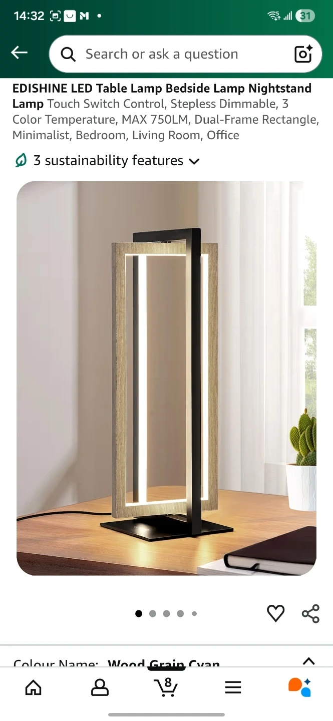 169This Edishine LED table lamp features touch switch control and is stepless dimmable! It offers 3 colour temperatures and has a dual-frame rectangle design. The colour is Wood Grain Cyan, perfect for a minimalist bedroom, living room, or office
