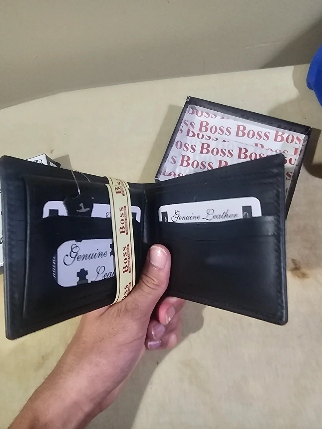BOSS bifold wallet crafted from genuine leather. Includes original box and authenticity cards. Multiple card slots and a bill compartment. A classic accessory for everyday use!