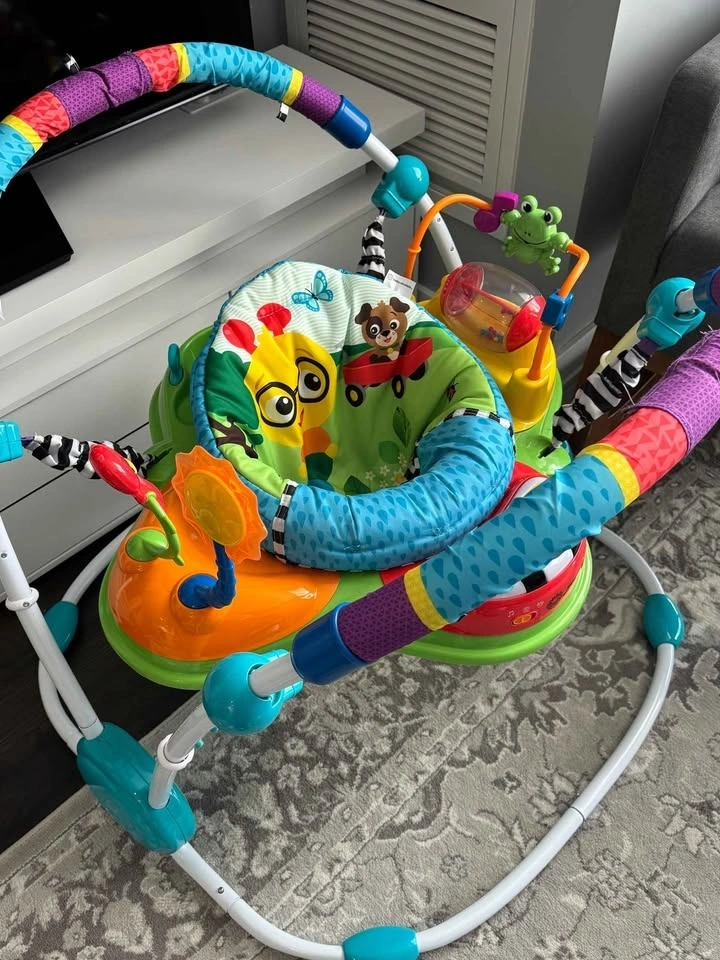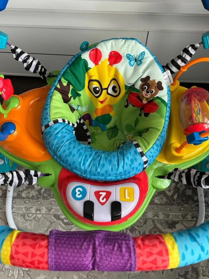 Gently used Baby Einstein Neighborhood Friends Activity Jumper for sale. Seat rotates 360 degrees to give baby full access to toys. Features 4 fun activity stations, including a piano that activates lights, classical melodies, and language learning in English, French, and Spanish. Has 5 height settings to grow with baby. Retails for $120 plus tax. Pickup in Oakville.
