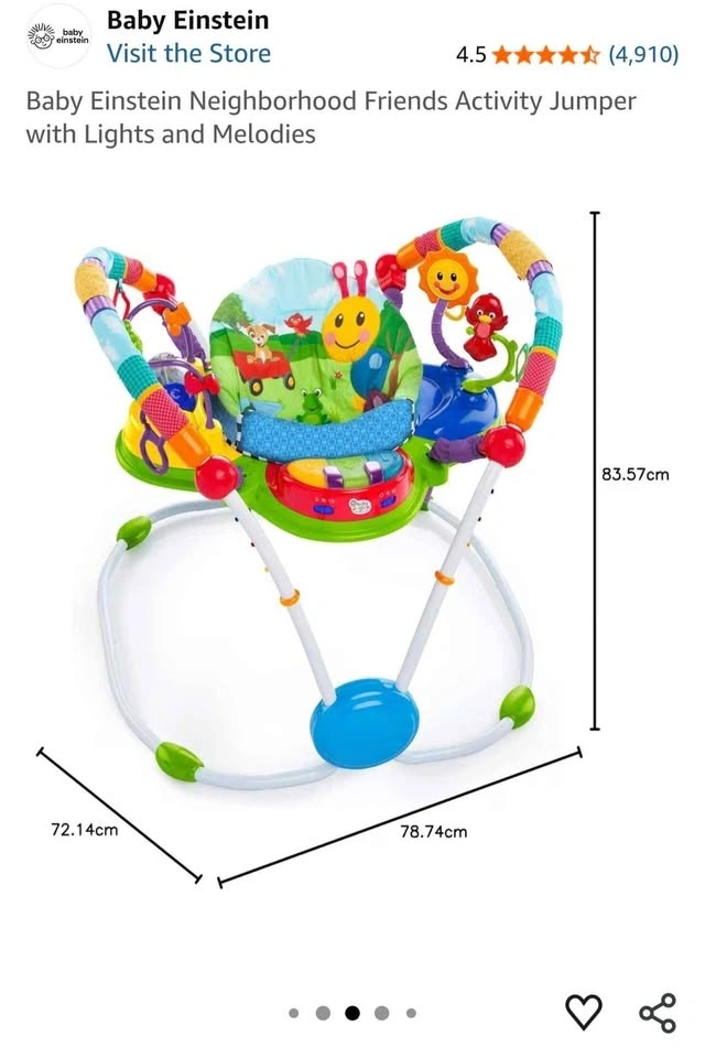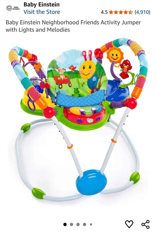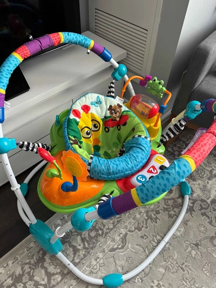 Gently used Baby Einstein Neighborhood Friends Activity Jumper for sale. Seat rotates 360 degrees to give baby full access to toys. Features 4 fun activity stations, including a piano that activates lights, classical melodies, and language learning in English, French, and Spanish. Has 5 height settings to grow with baby. Retails for $120 plus tax. Pickup in Oakville.