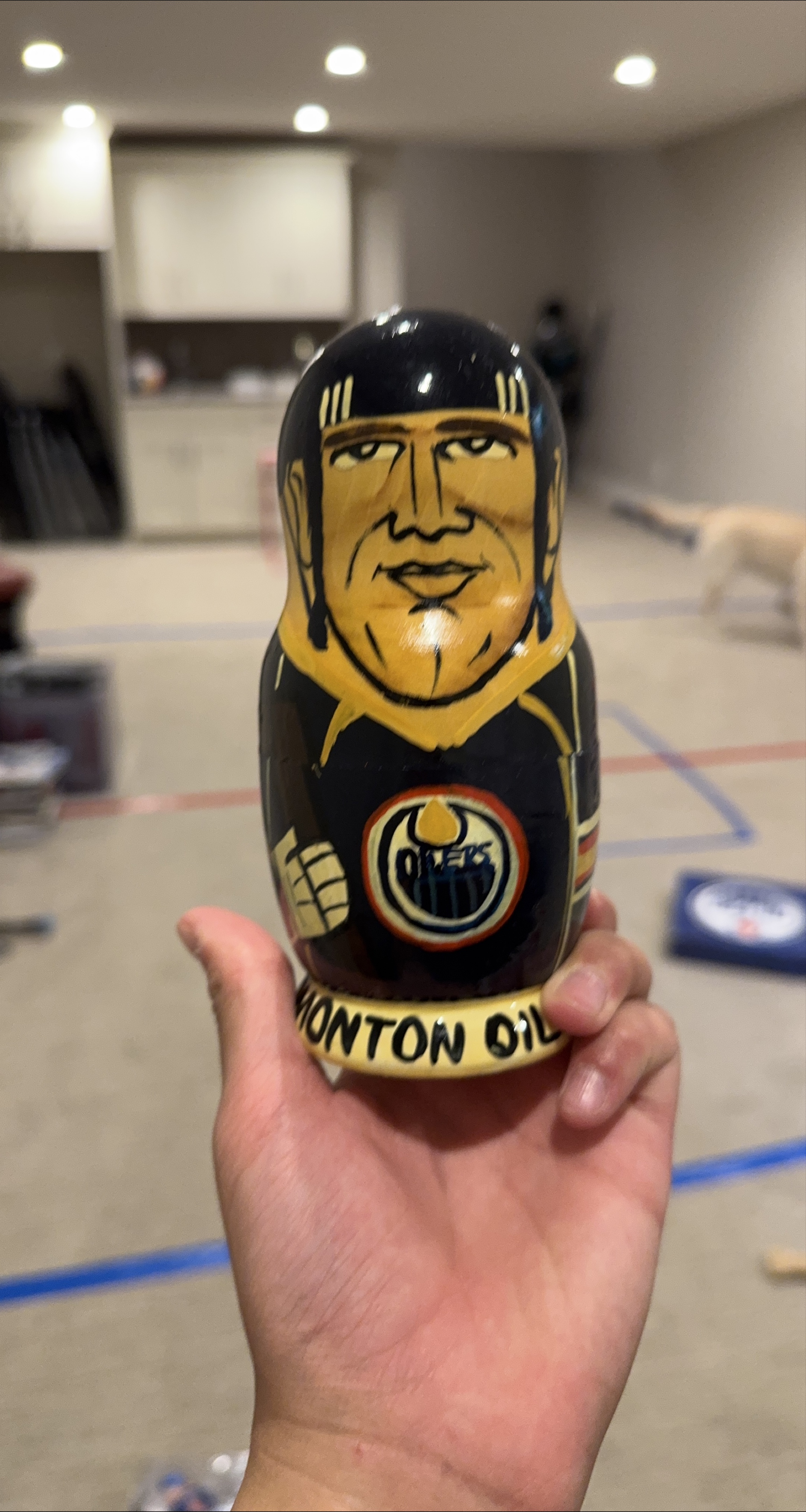 Selling an Edmonton Oilers matryoshka doll! It's in great shape and ready to find a new home. Perfect for any Oilers fan or collector of unique memorabilia