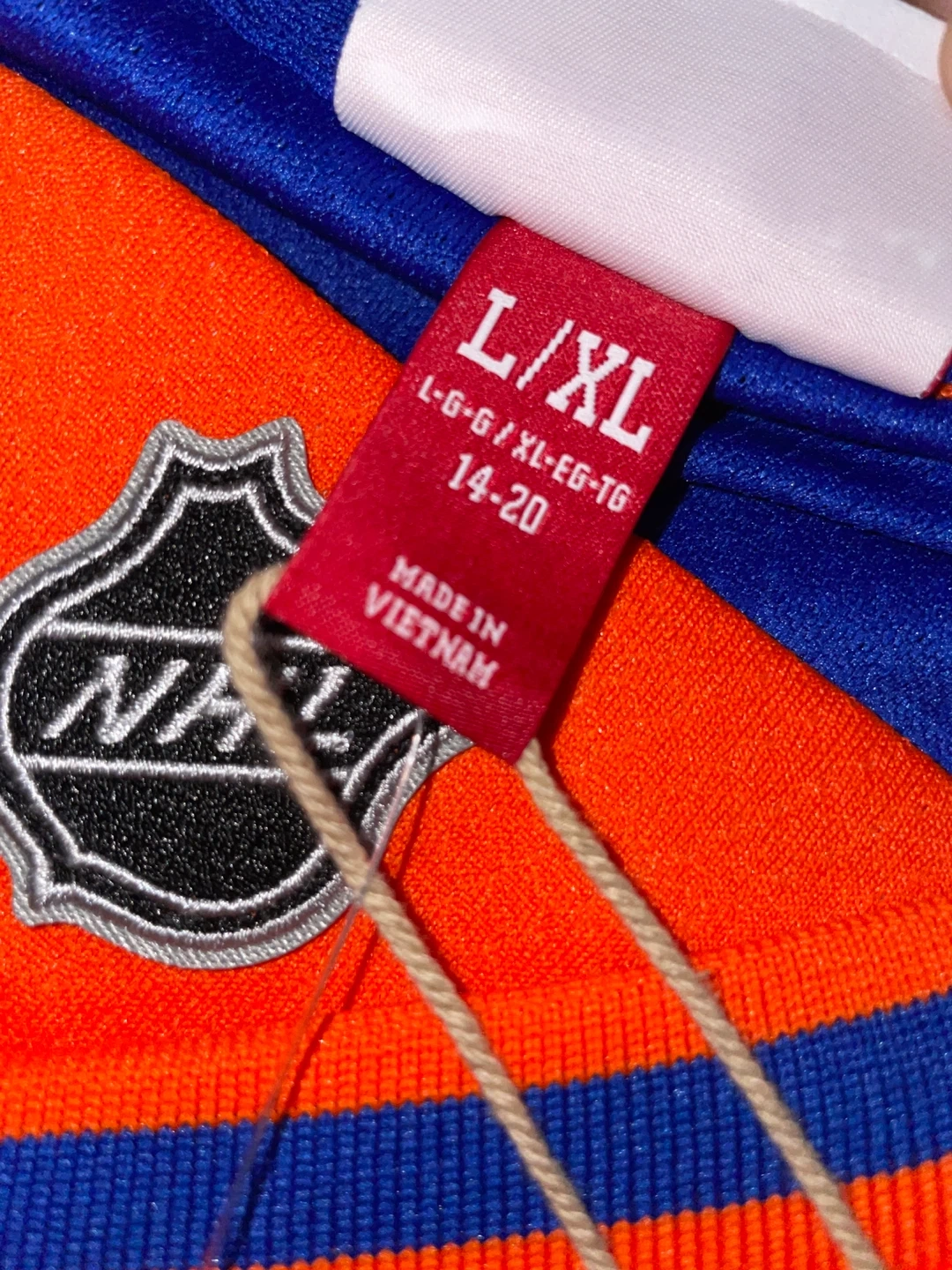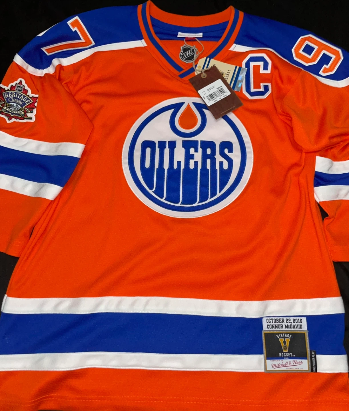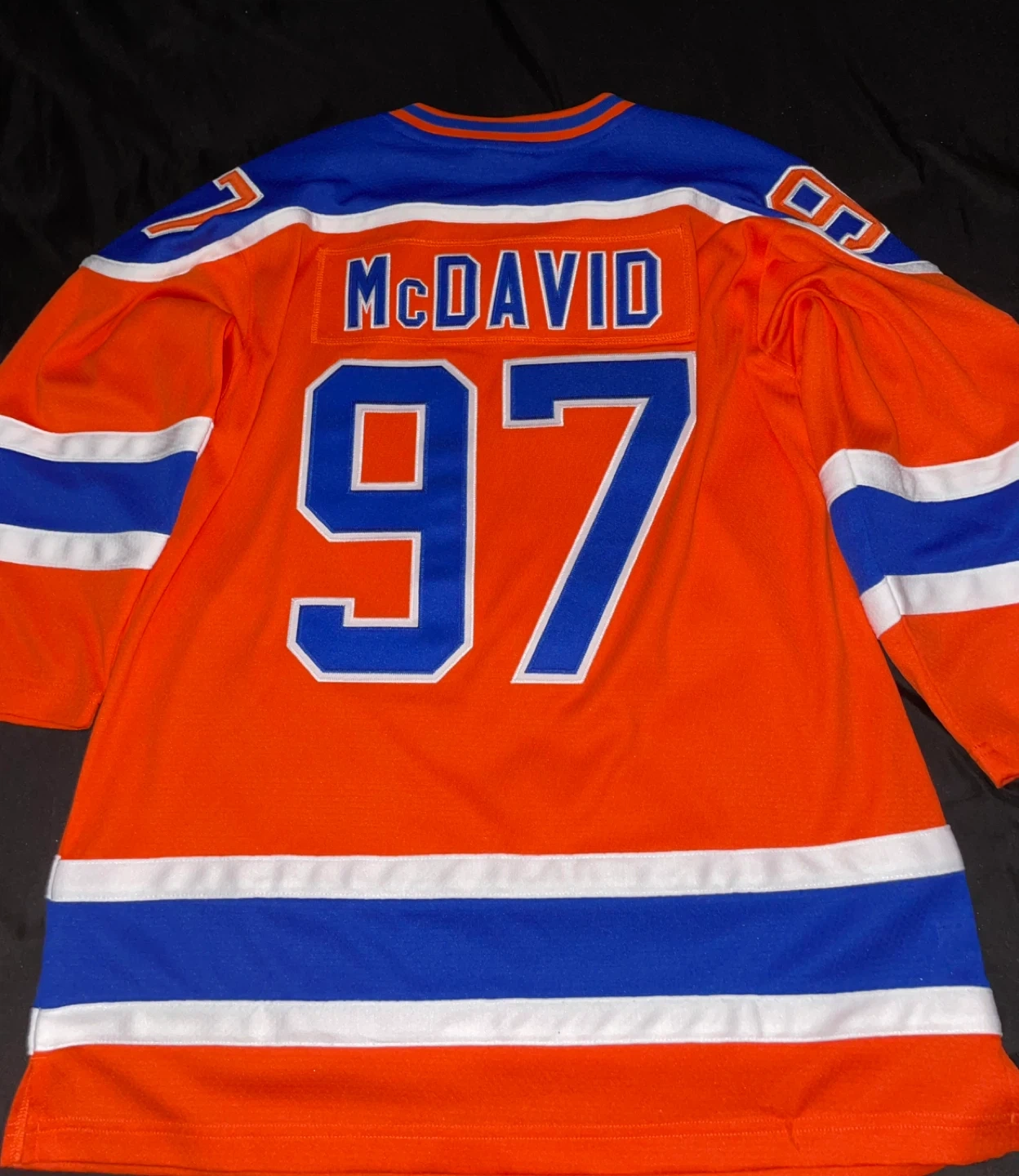 Selling an Edmonton Oilers jersey, McDavid #97. It's in great condition and ready for the next game! Features the classic Oilers colours and logo. Perfect for any Oilers fan!