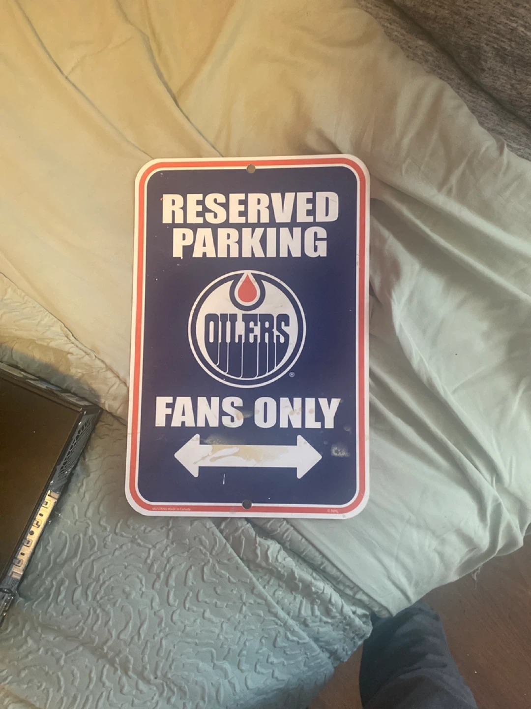 10Selling an Edmonton Oilers 'Reserved Parking Fans Only' sign. It's in good condition and perfect for any die-hard Oilers fan to show their team spirit!