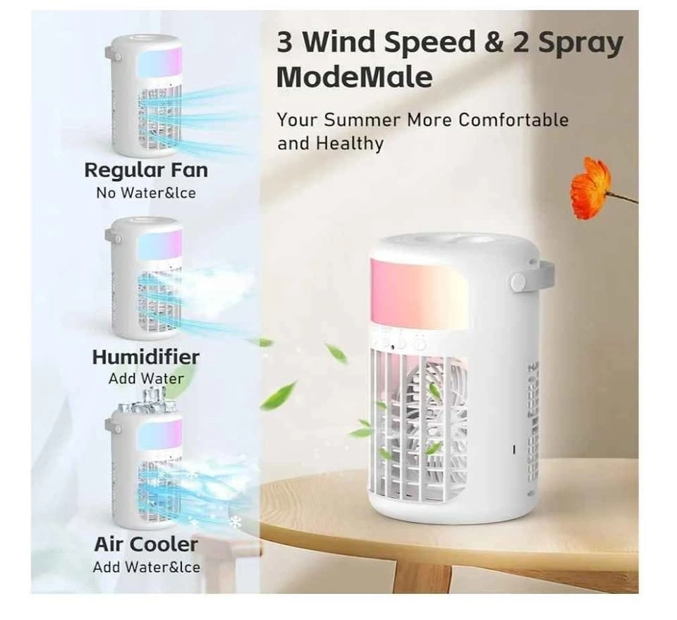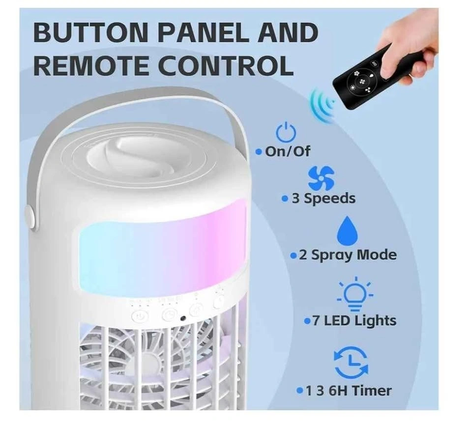 2025 Upgraded 4-IN-1 Ultra-Quiet Design Portable AC Unit with 2 Cool Mist & Speeds, 1500ml, Remote Control Air Conditioner Evaporative for Home, Office, Bedroom, Camping. Front vents slightly loose.