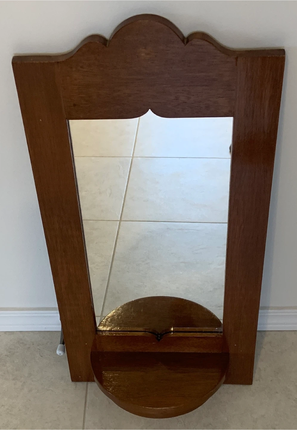 Selling a unique vintage wooden mirror that comes with a shelf! It's a charming piece that would add character to any room. The mirror is in good condition and ready to find a new home