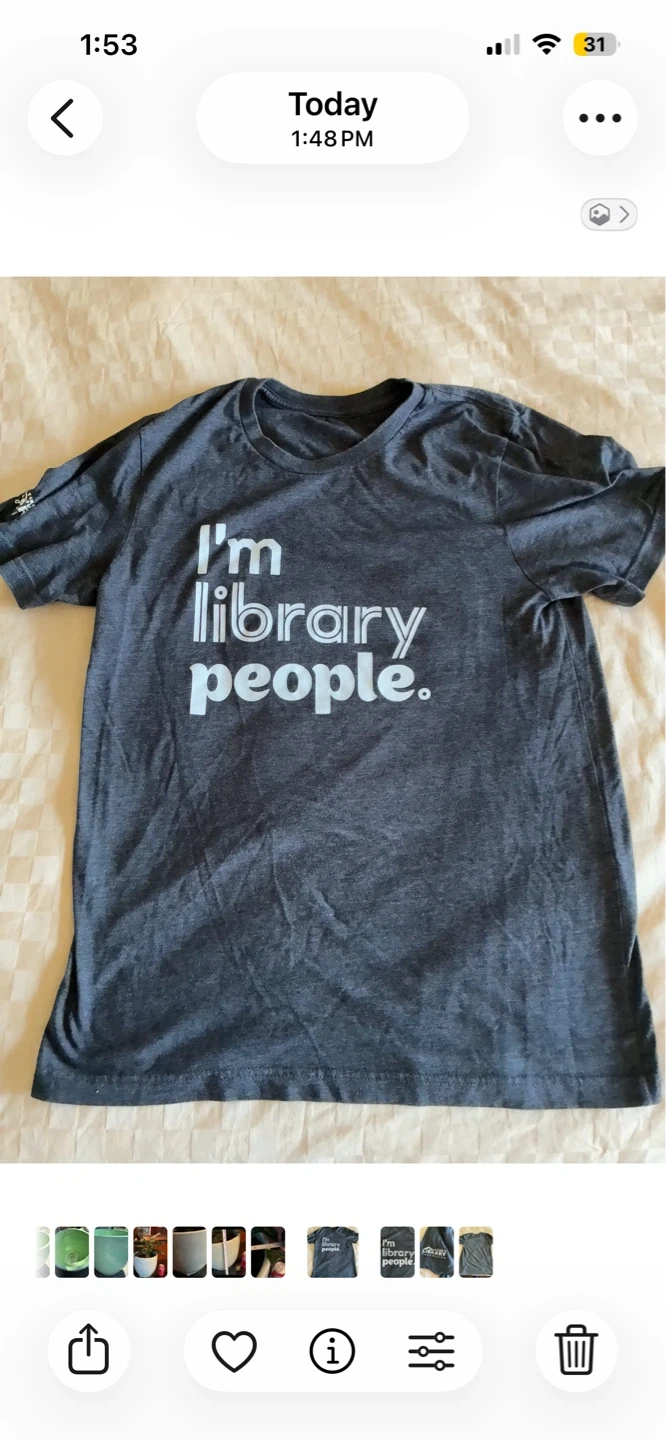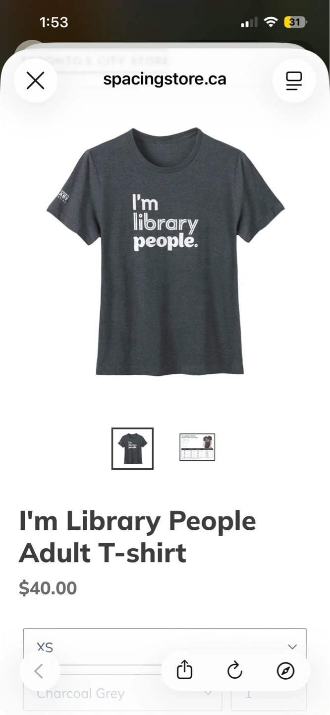 $20 I'm Library People Adult T-shirt TPL Toronto public library size Small Medium dark grey Donlands O'Connor