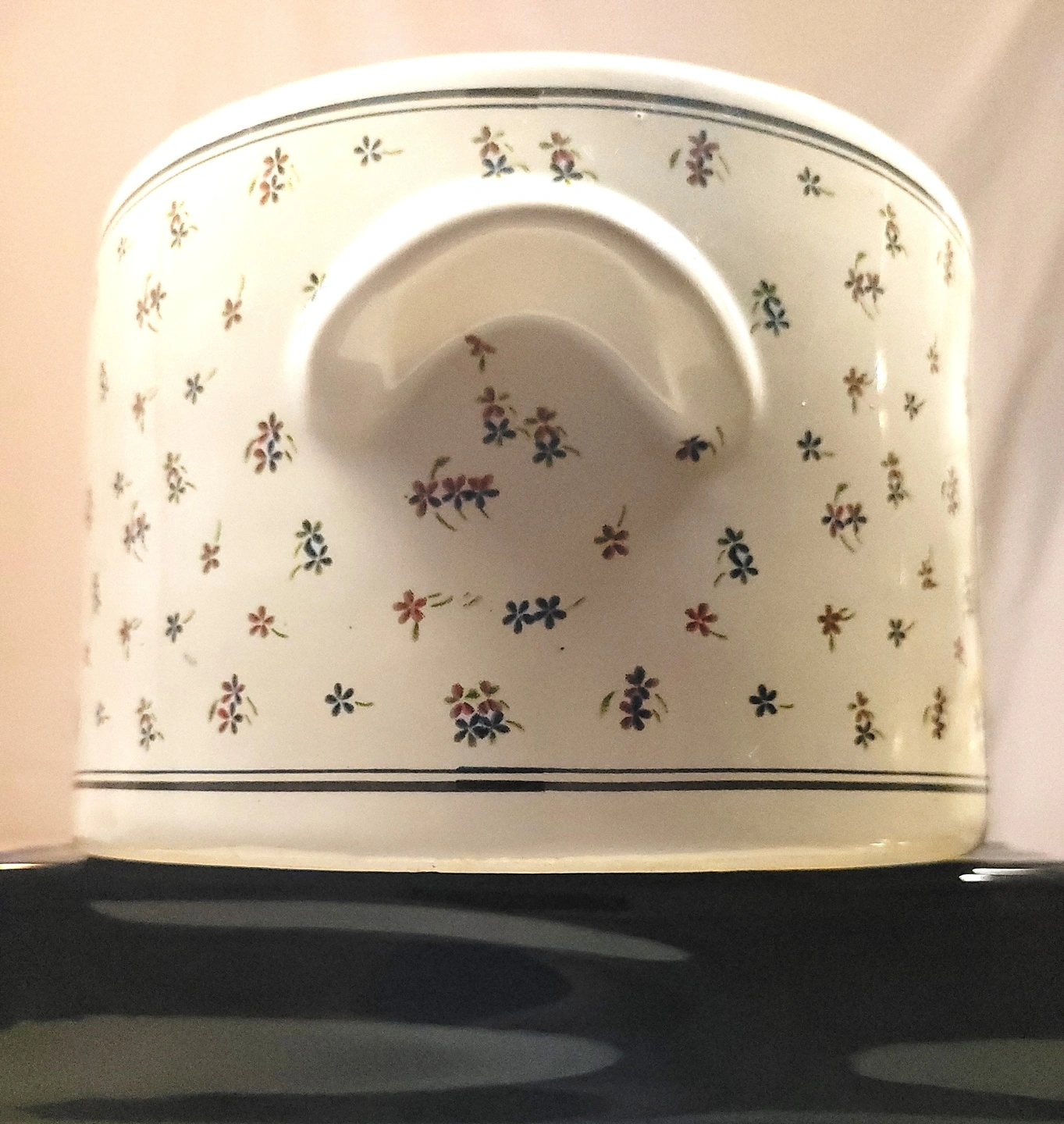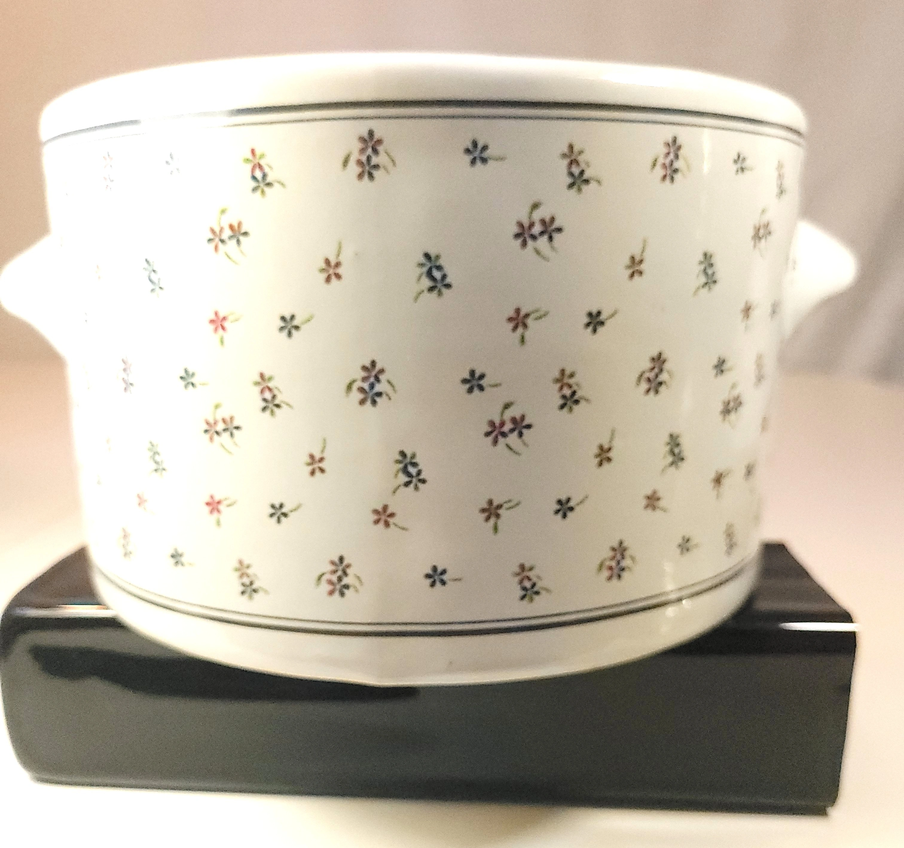 Elevate your home decor with this charming piece of vintage stoneware, produced in Taiwan during the 1970s-1980s. This small, weighted ceramic planter/crock features a hand-painted floral design set against a cream-colored glazed body.