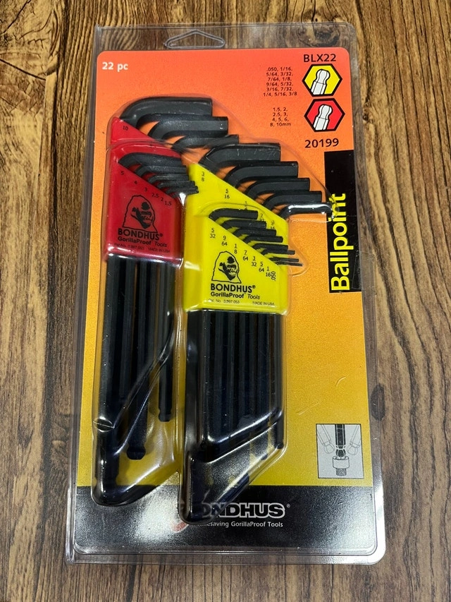 For sale is a brand new, never opened 22 Piece Bondhus 20199 BLX22 Ball End Hex L Wrench Metric SAE Inch Set. Please see photos. Cash only. Pickup is in Etobicoke, near Queensway and Islington.