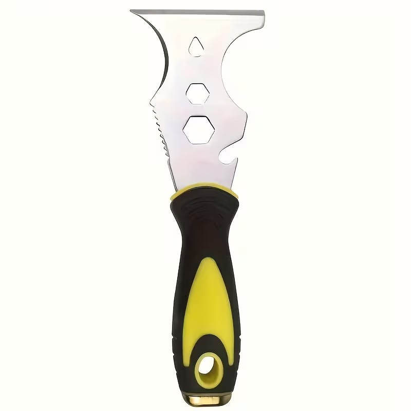 [15 in 1 Design]---The scraper is designed with an ergonomic curved handle for greater comfort and control. The painter's tool can be used as a straight scraper, curved scraper, gouger, screwdriver, nail puller, can opener, hammer, roller cleaner, box opener, pry, Allen wrench & more. 100% Satisfaction Guarantee.