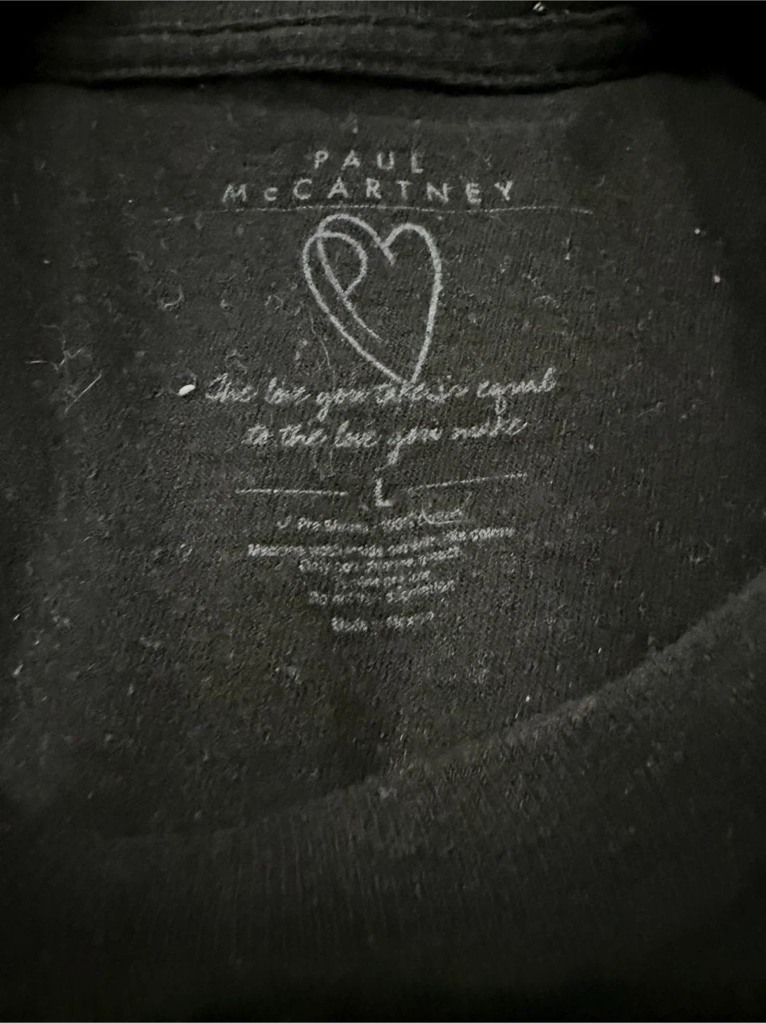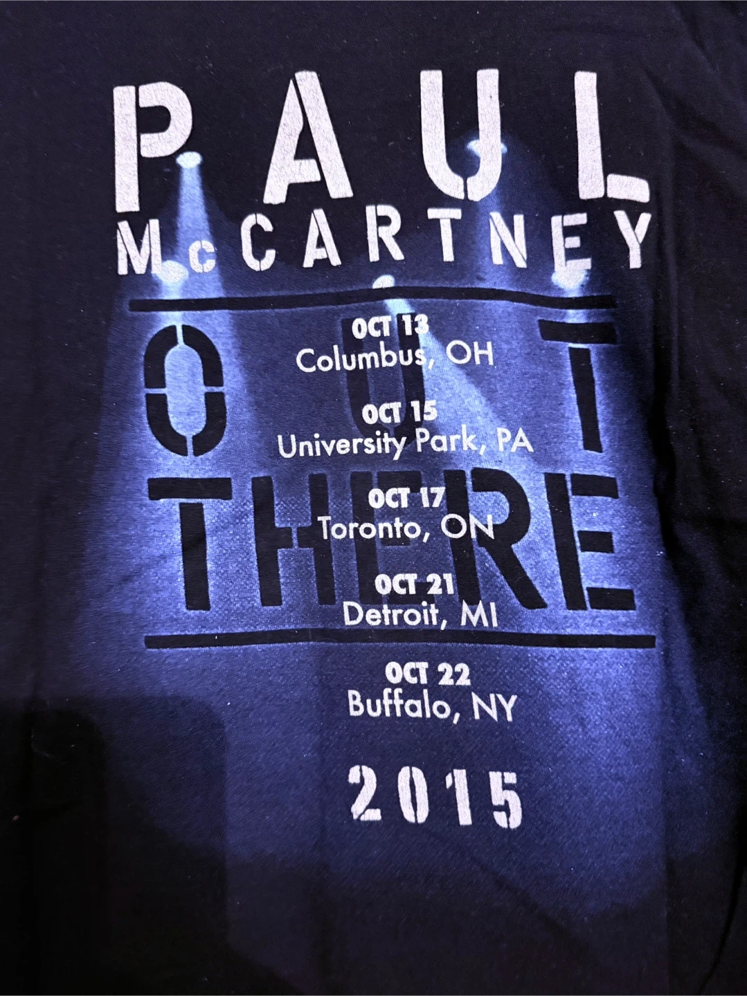 Black t-shirt from the Paul McCartney 'Out There' tour in 2015. It's a size large. Features tour dates on the back including Toronto, ON.