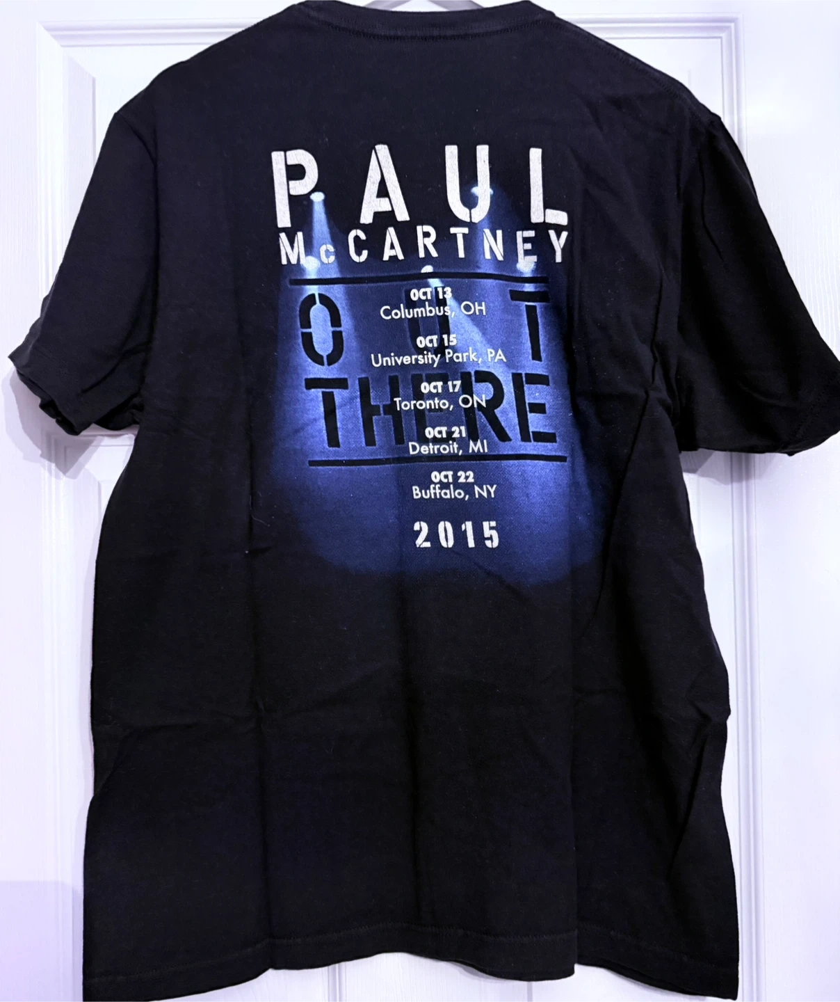 Black t-shirt from the Paul McCartney 'Out There' tour in 2015. It's a size large. Features tour dates on the back including Toronto, ON.