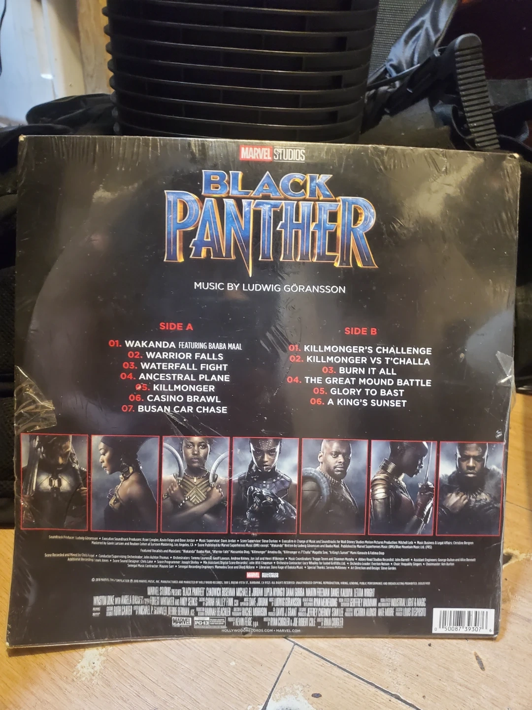 This is the original motion picture soundtrack vinyl record for Marvel Studios' Black Panther, featuring music by Ludwig Göransson. It includes tracks from the film's score, such as 'Wakanda' and 'King's Sunset'. It's a great addition for fans of the movie or film score collectors.