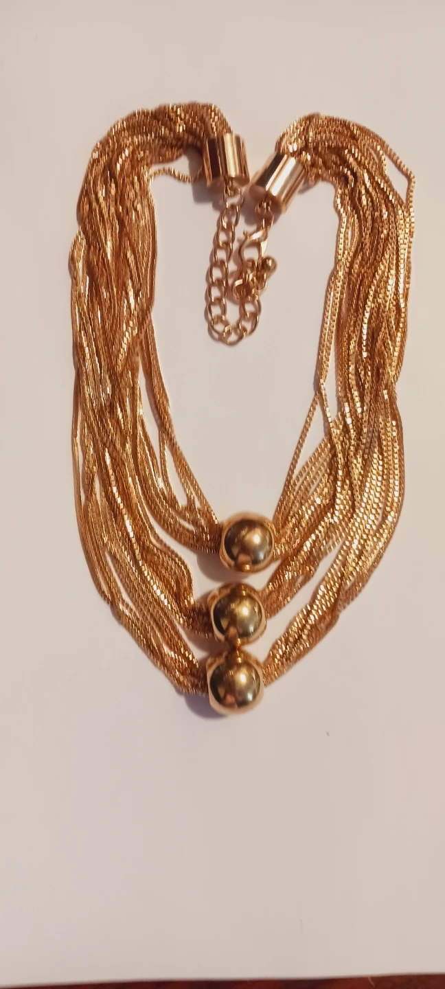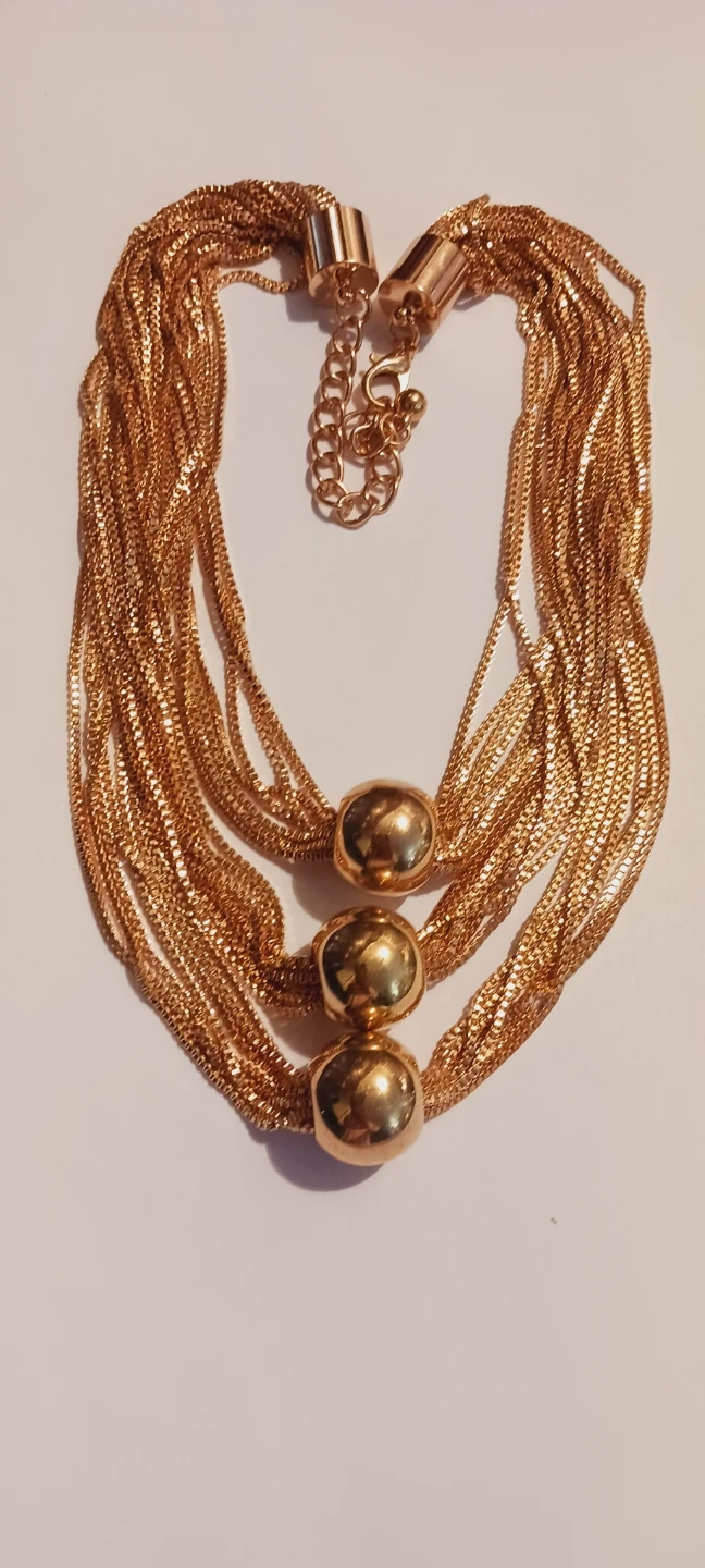 New !!! Exaggerated Statement multi-strand necklace featuring a rich gold tone. It's adorned with three spherical beads as a focal point. The closure includes an extender chain for adjustable length. TRENDY RETRO RICH GOLD TONE MULTI STRAND NECKLACE !! NEW !! ALL MY PRICES ARE NEGOTIABLE !! 16" long.