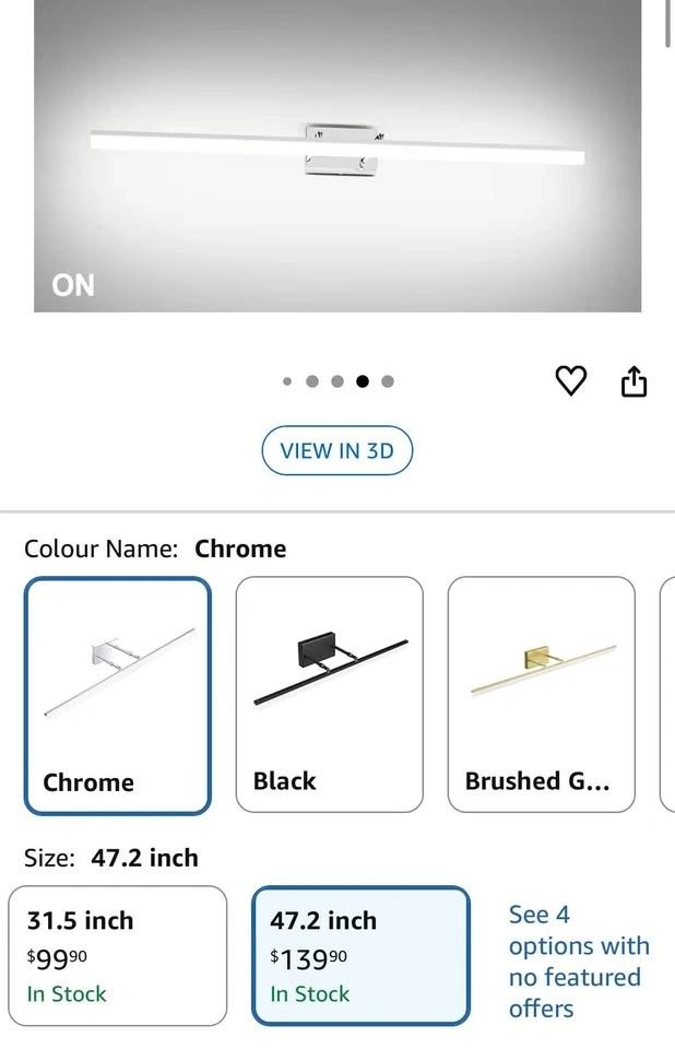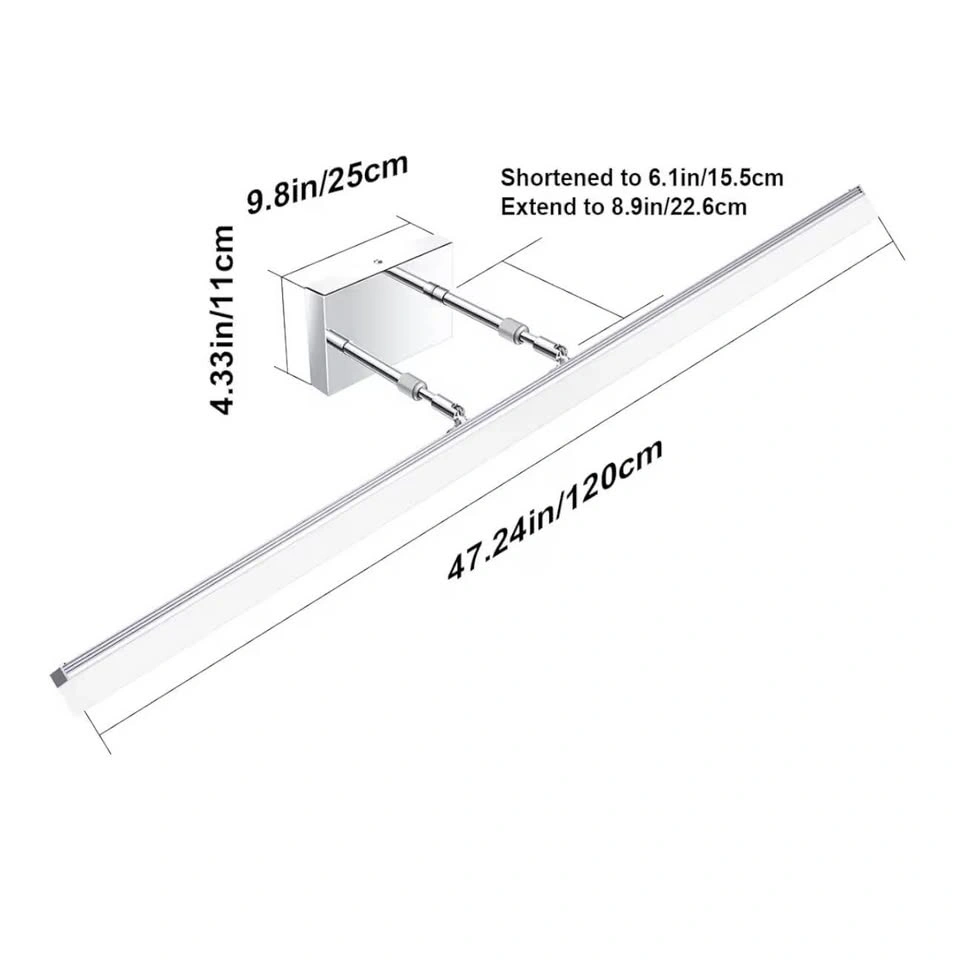 Sleek and modern, this 47-inch LED vanity light is designed to elevate your bathroom with bright, clean illumination. The chrome finish adds a stylish, contemporary touch, while the 5500K daylight white color provides clear, natural-looking lighting ideal for makeup application and shaving. Energy-efficient LED technology ensures long-lasting performance and reduced power consumption.