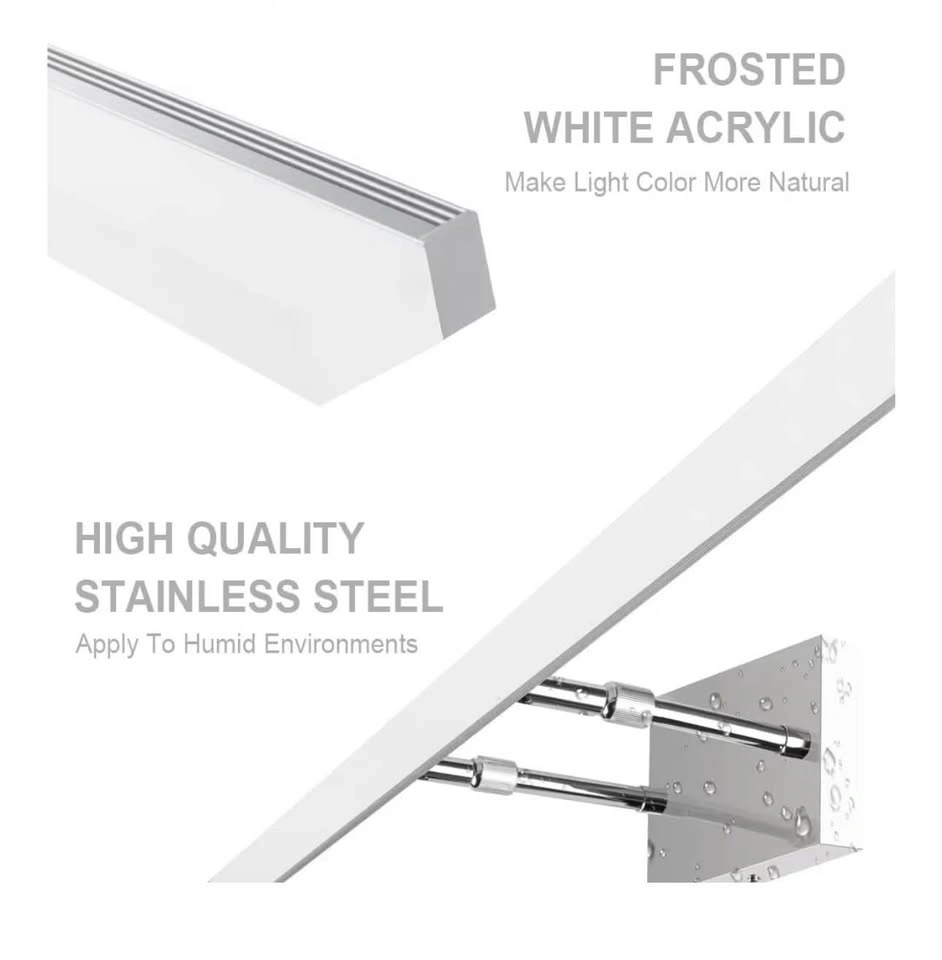 Sleek and modern, this 47-inch LED vanity light is designed to elevate your bathroom with bright, clean illumination. The chrome finish adds a stylish, contemporary touch, while the 5500K daylight white color provides clear, natural-looking lighting ideal for makeup application and shaving. Energy-efficient LED technology ensures long-lasting performance and reduced power consumption.
