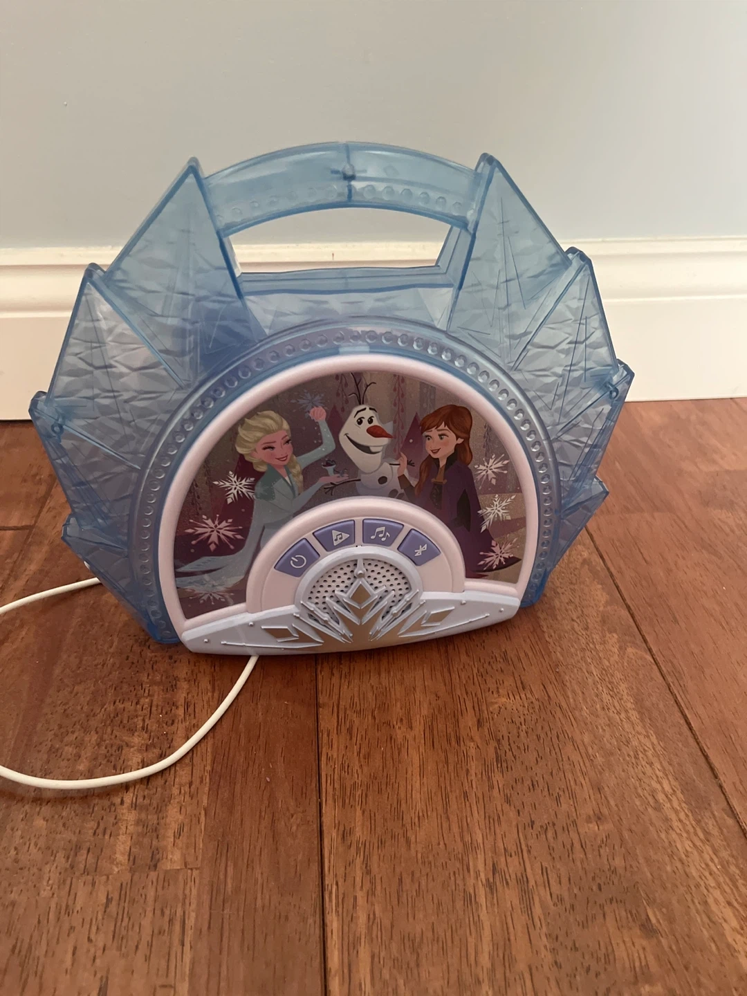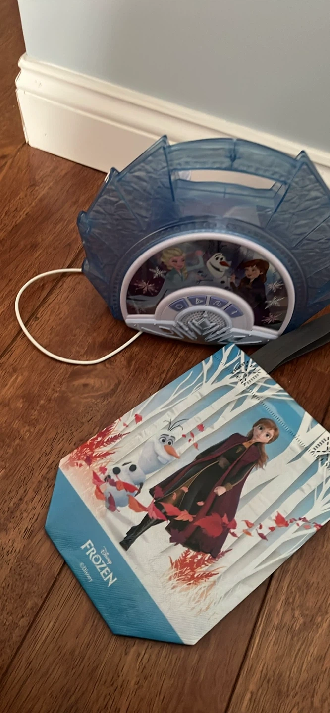 Selling a Disney Frozen 2 portable music player! It features Elsa, Anna, and Olaf. Perfect for any Frozen fan! Gift bag included