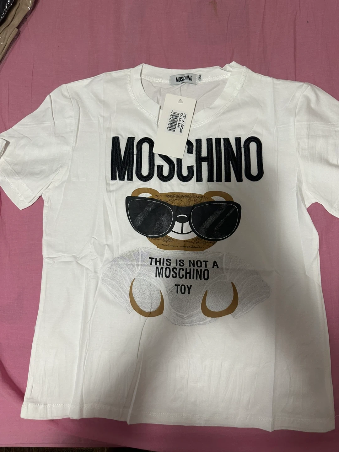 Moschino short-sleeved t-shirt featuring a graphic print with the iconic teddy bear. Made of comfortable cotton material. Size S/M.