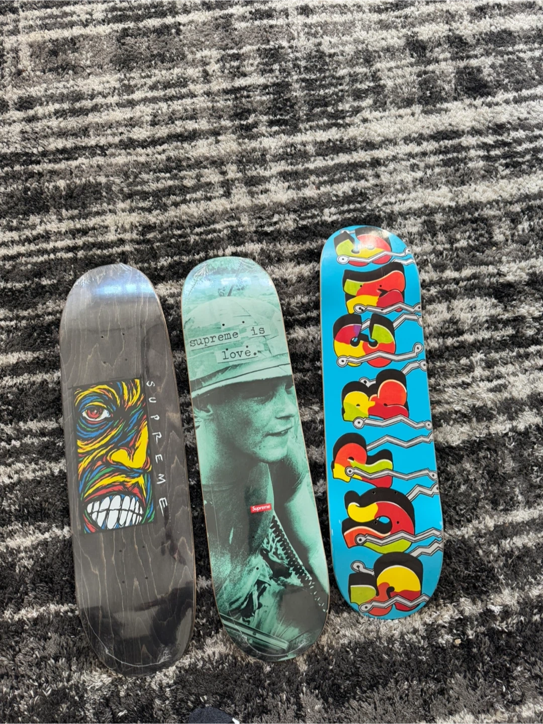 Brand new supreme skateboards never used left and middle are sealed still and one on right is new but open