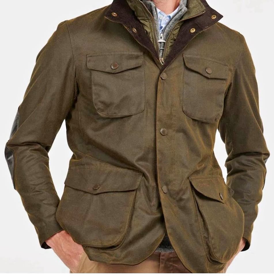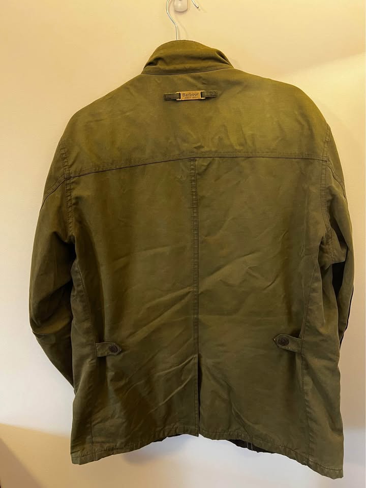 Selling a used Barbour Ogston Wax Cotton Jacket in olive, size XL. This durable jacket features a waxed cotton exterior, corduroy collar, and multiple pockets. It's perfect for outdoor activities or everyday wear. The jacket is in good condition, showing some signs of wear. I will include a can of Barbour wax to rewax if desired. Original price of $800 and bought in Oxford, I’ve priced this one to sell quickly. I can also include a can of Barbour wax to rewax the jacket if desired. Let me know if you're interested!