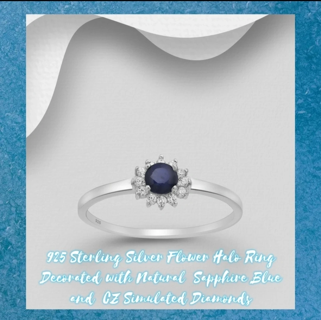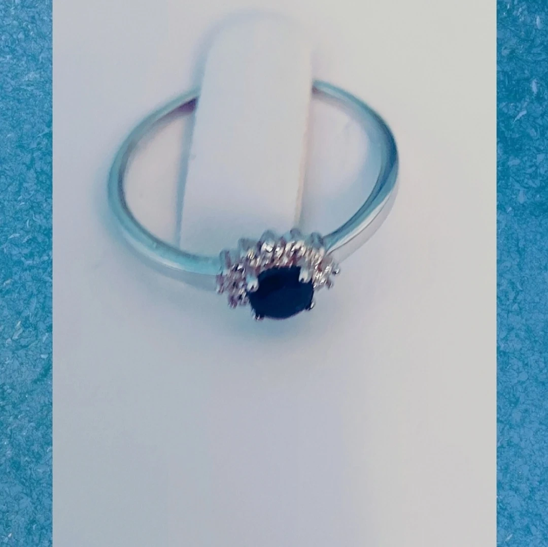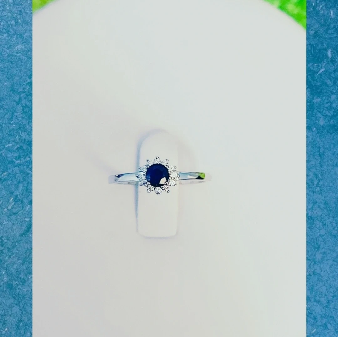 BLUE SAPPHIRE RING WITH CZ SIMULATED DIAMONDS