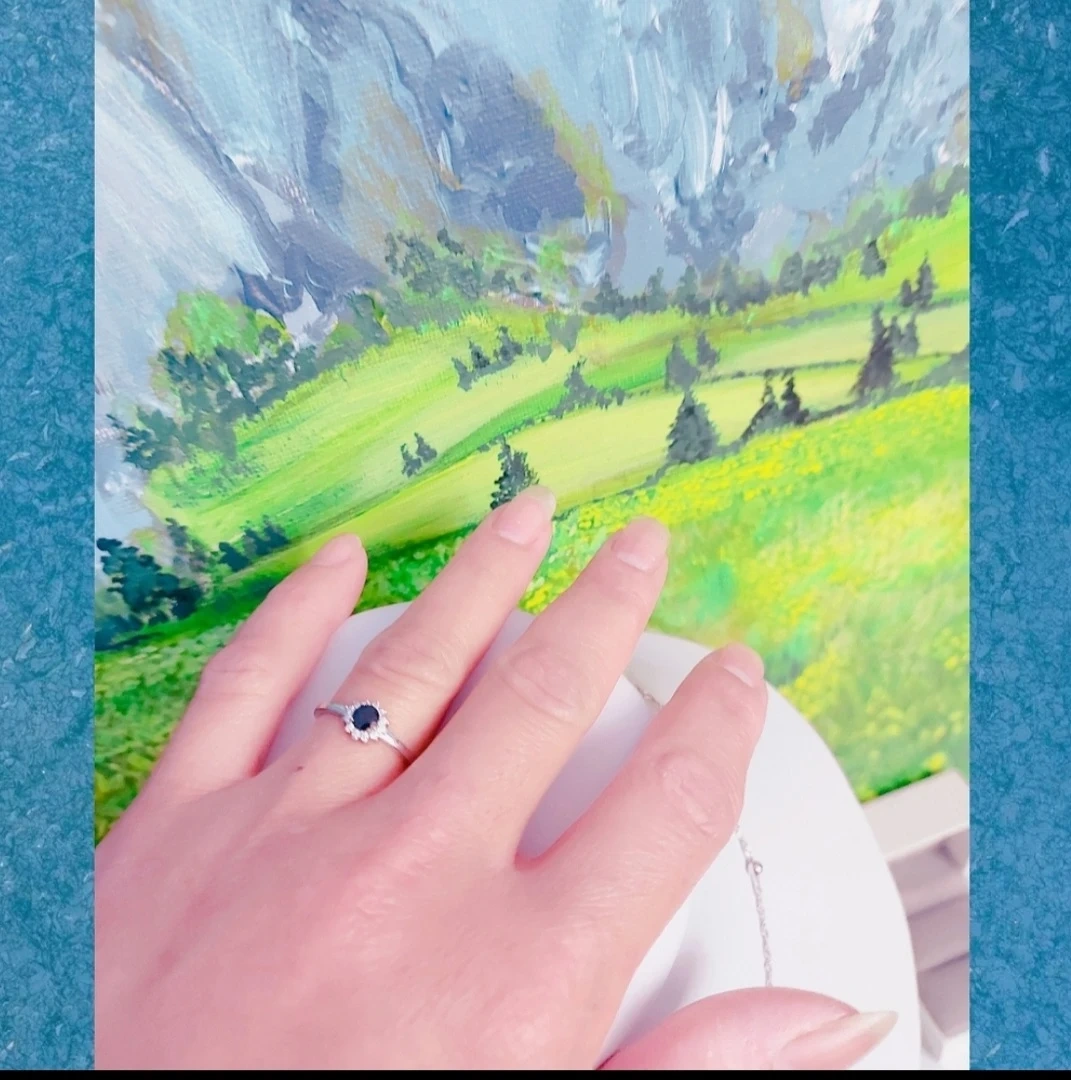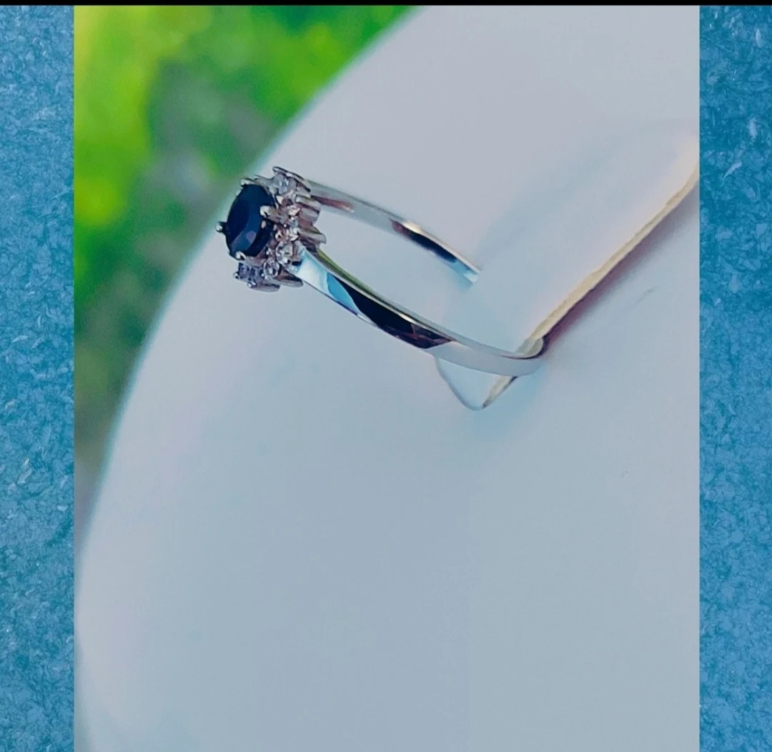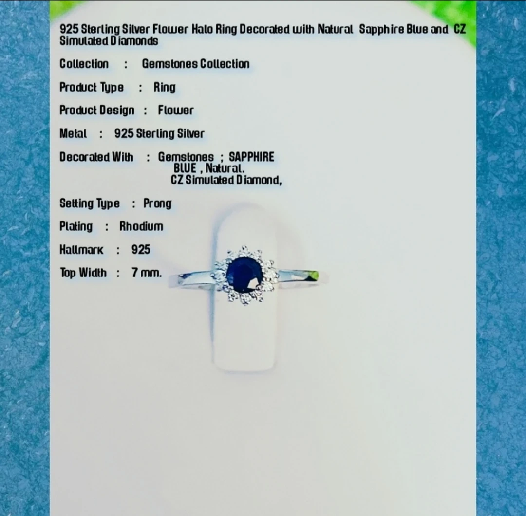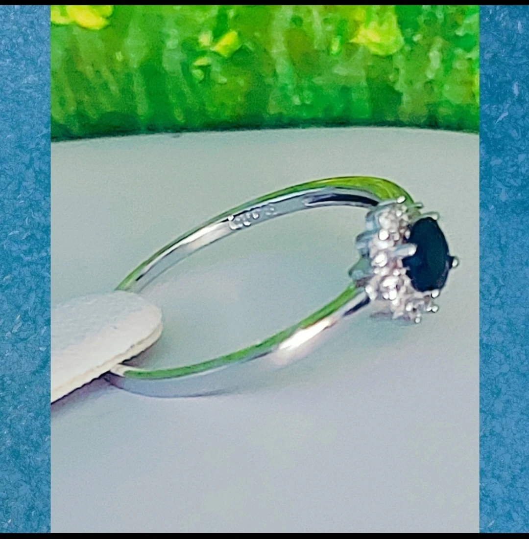 BLUE SAPPHIRE RING WITH CZ SIMULATED DIAMONDS