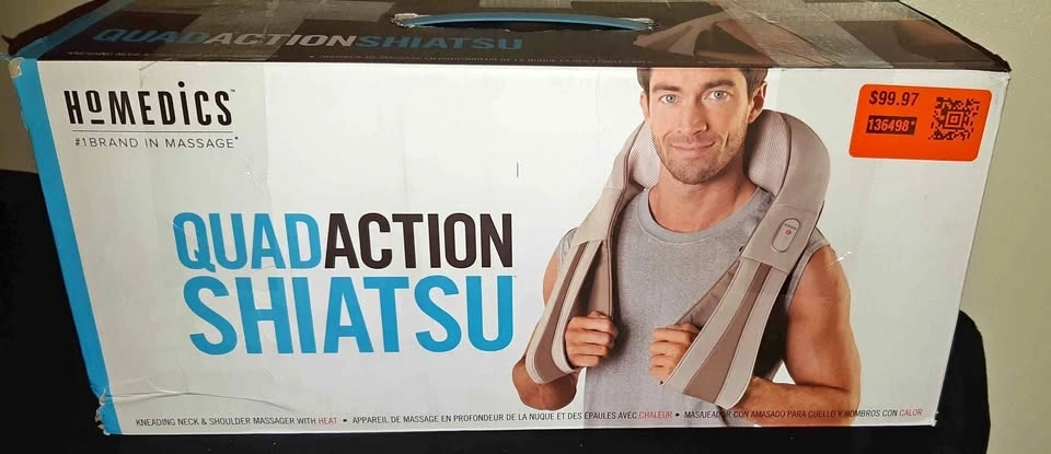 Brand new Homedics massager. Has a slight clicking sound on one side when massaging, but it does not affect the item whatsoever. Tested and verified. Box may have minor imperfections.