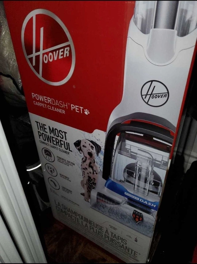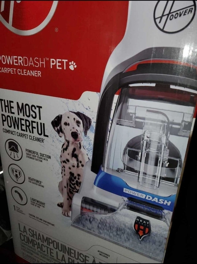 I'm selling a Hoover Power Dash Pet Carpet Cleaner in new condition, perfect for keeping your carpets fresh and clean. This compact carpet cleaner offers powerful suction and HeatForce for faster drying, making it ideal for pet owners and anyone looking to maintain their carpets effortlessly. Additional features include: * Powerful Suction * HeatForce for Faster Drying * Lightweight Design for Ease of Use Located in Port credit