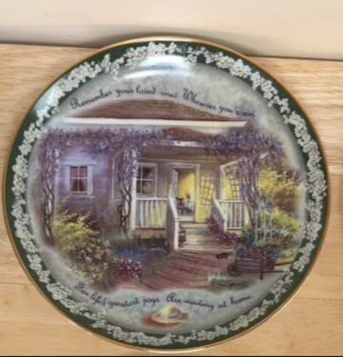 Selling a set of collector plates featuring charming home scenes! Each plate is decorated with a unique house and heartwarming quotes around the rim. Perfect for adding a touch of cozy nostalgia to your home decor